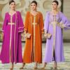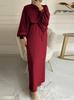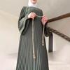Vestido plisado elegante de estilo árabe para mujer musulmana 2024, color liso, cuello redondo, manga larga, plisado