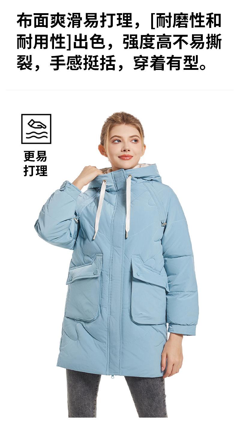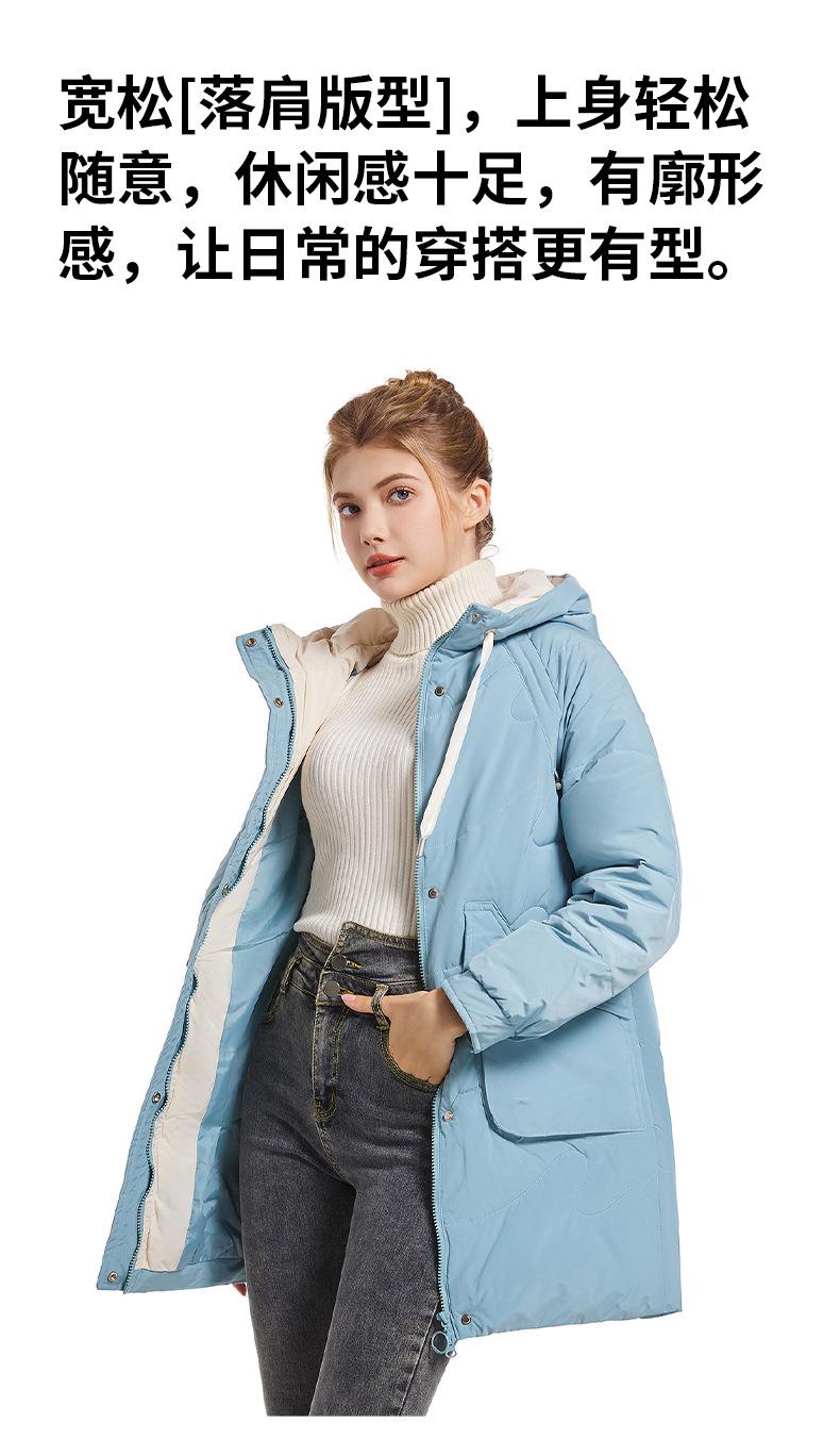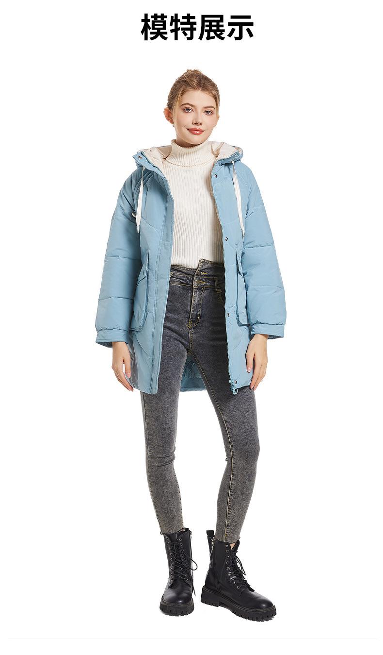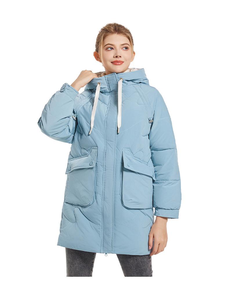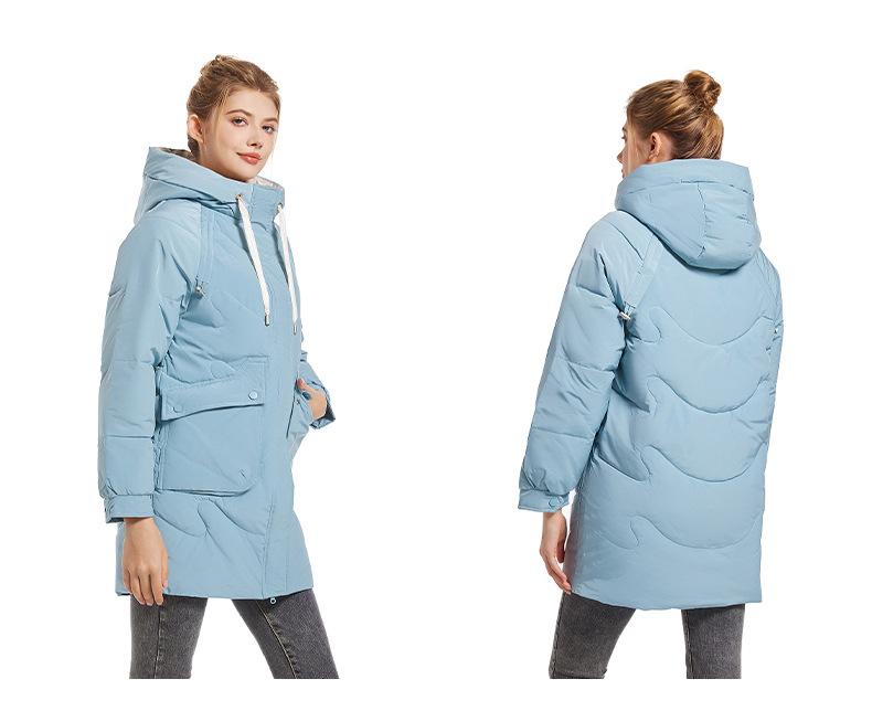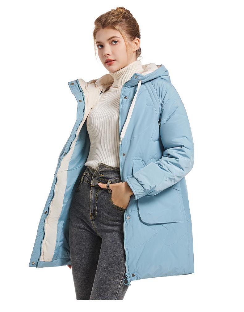 Abrigo de Algodón Nuevo de Fábrica para Otoño e Invierno, Abrigo Acolchado Azul Cálido con Capucha Largo para Mujer