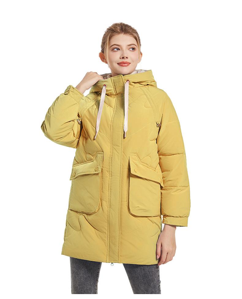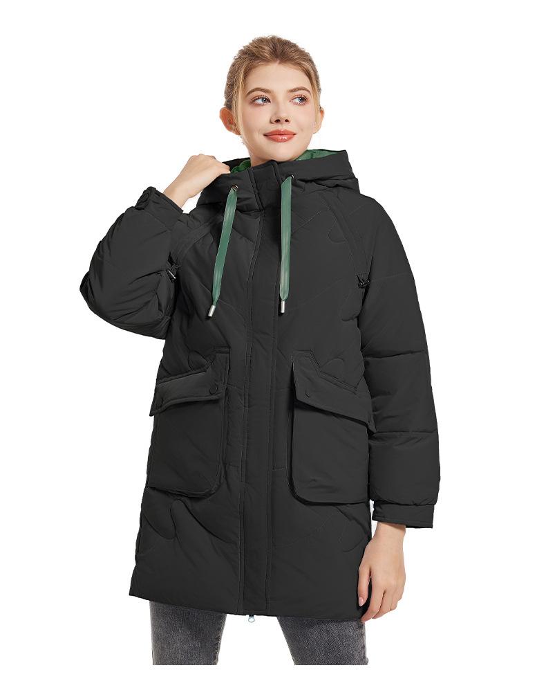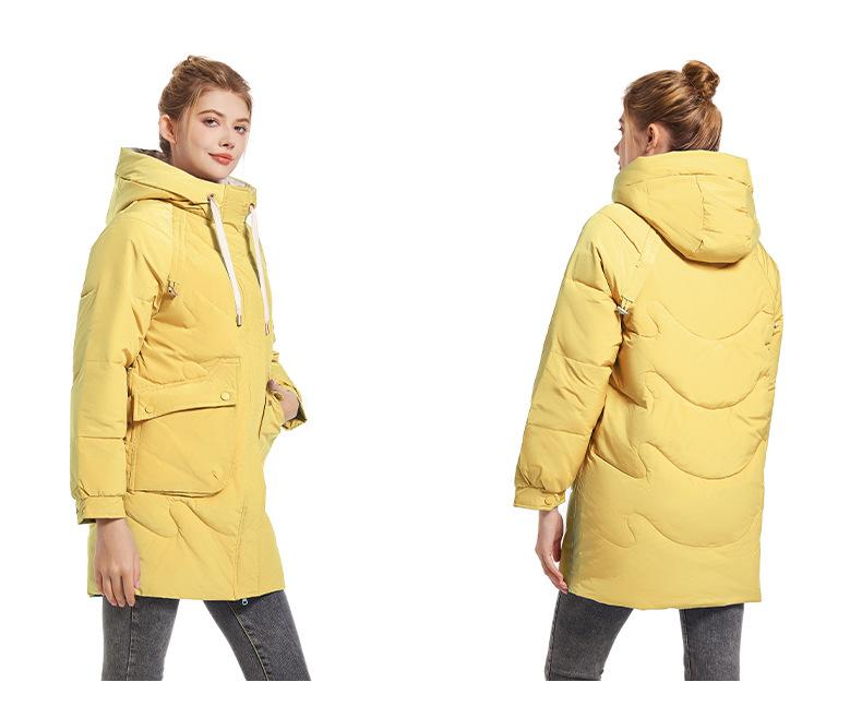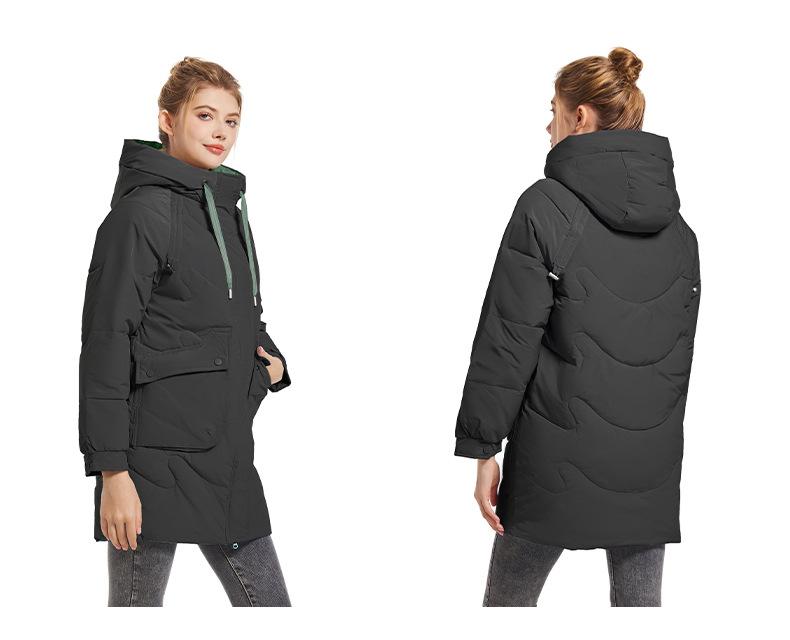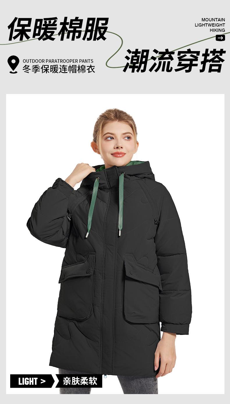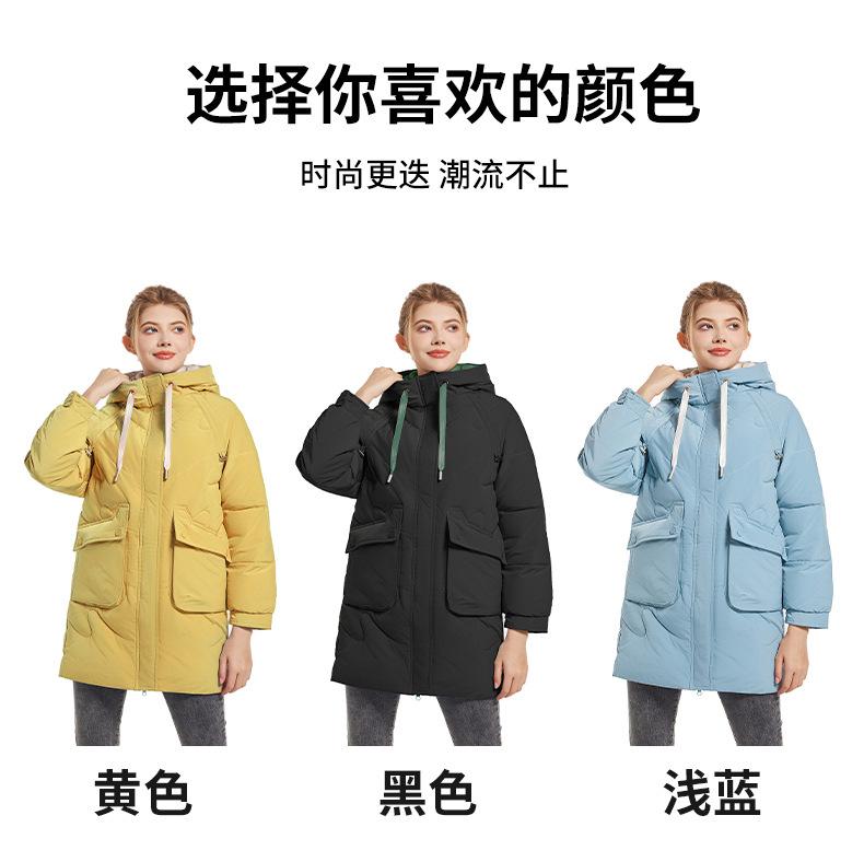Abrigo de Algodón Nuevo de Fábrica para Otoño e Invierno, Abrigo Acolchado Azul Cálido con Capucha Largo para Mujer