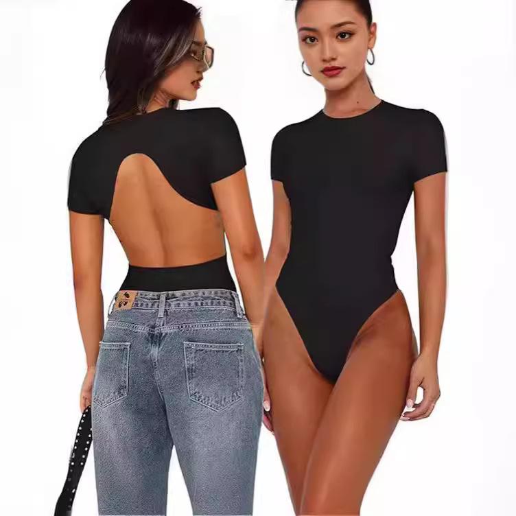 Mono Europeo y Americano de Nuevo Estilo sin Espalda Micro Acampanado para Mujer Verano de Alta Gama Sexy Mono Sexy de Una Pieza para Mujer