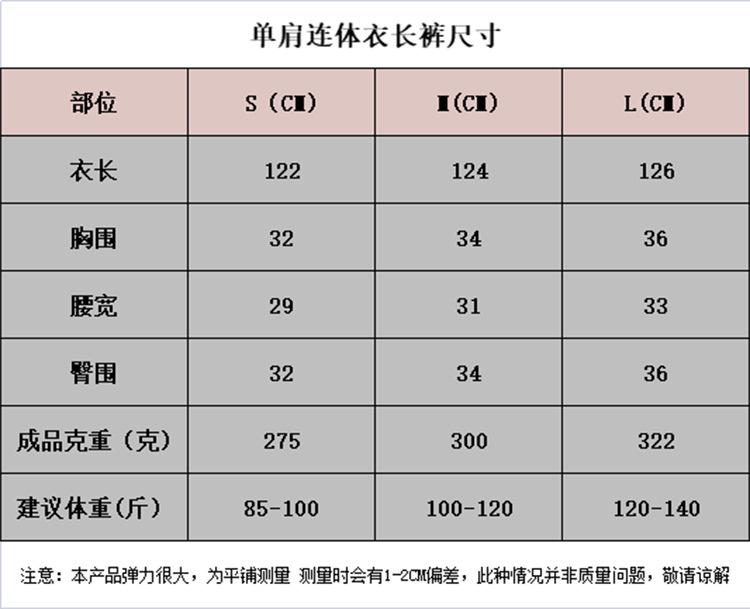 S (recommended weight 42.50 kg-50.00 kg, M (recommended weight 50.00 kg-60.00 kg, L (recommended weight 60.00 kg-70.00 kg