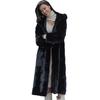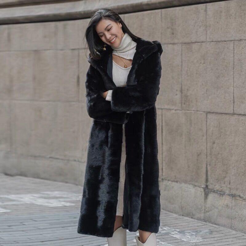 Abrigo de piel de alta gama imitación visón negro largo con capucha cálido de alta gama invierno mujer