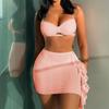 2023 nuevo bikini de color sólido europeo y americano, falda de malla sexy, traje de baño de tres piezas, traje de baño de bikini para mujer, venta al por mayor