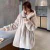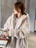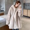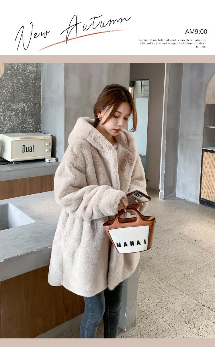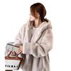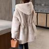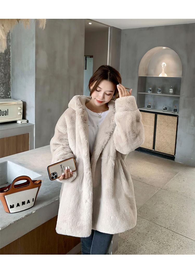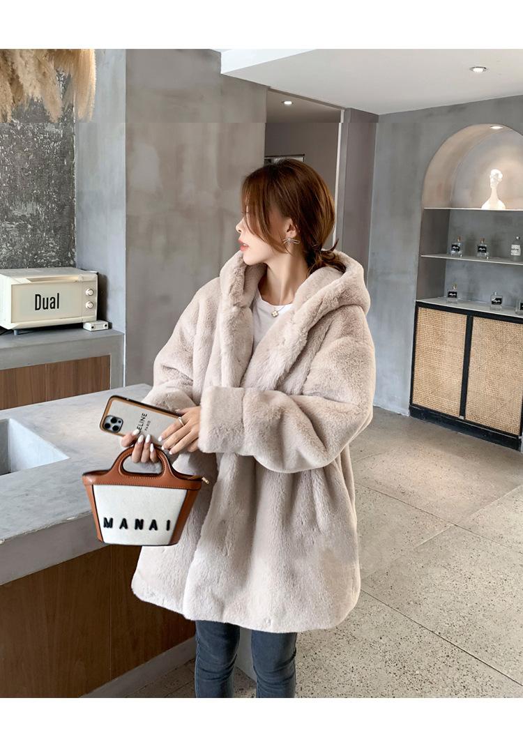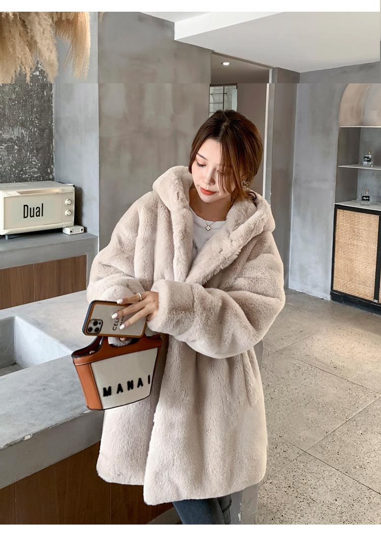 Abrigo de piel de conejo de cintura ajustada de invierno transfronterizo para mujer, gorro largo Dalian, abrigo grueso y cálido y esponjoso.