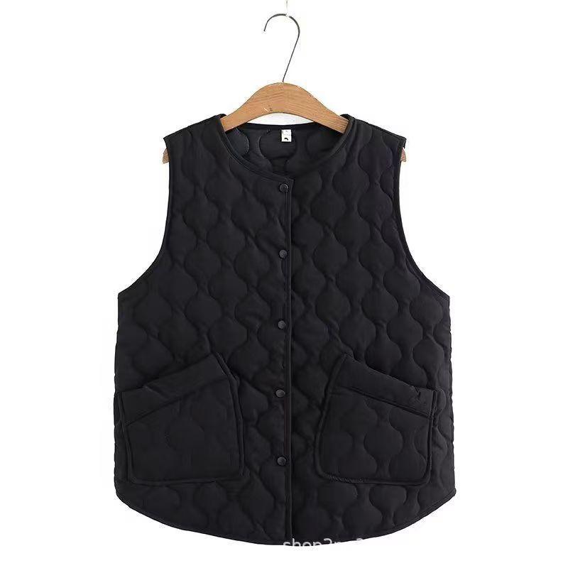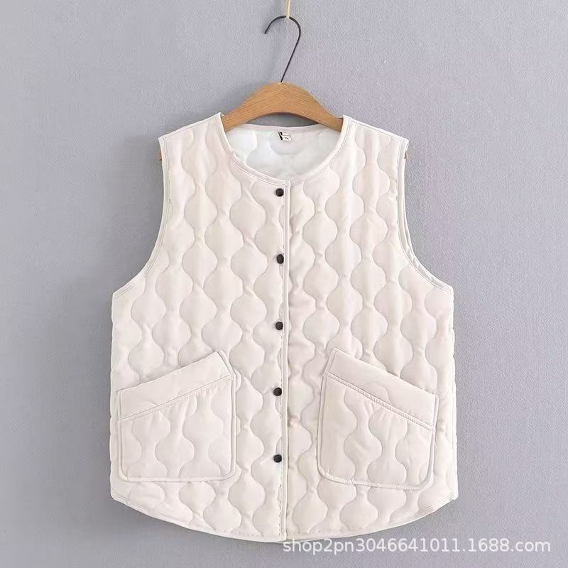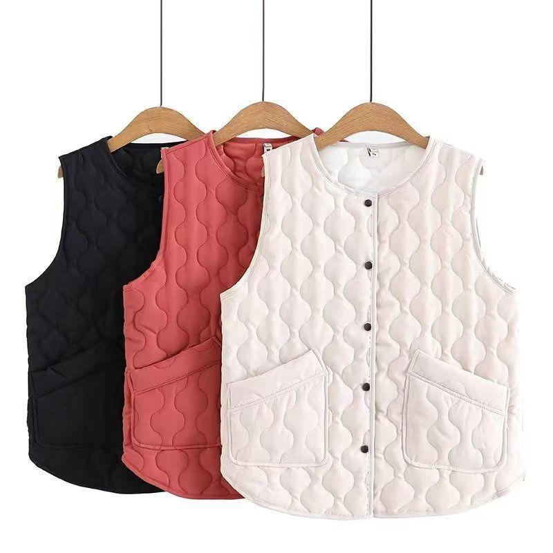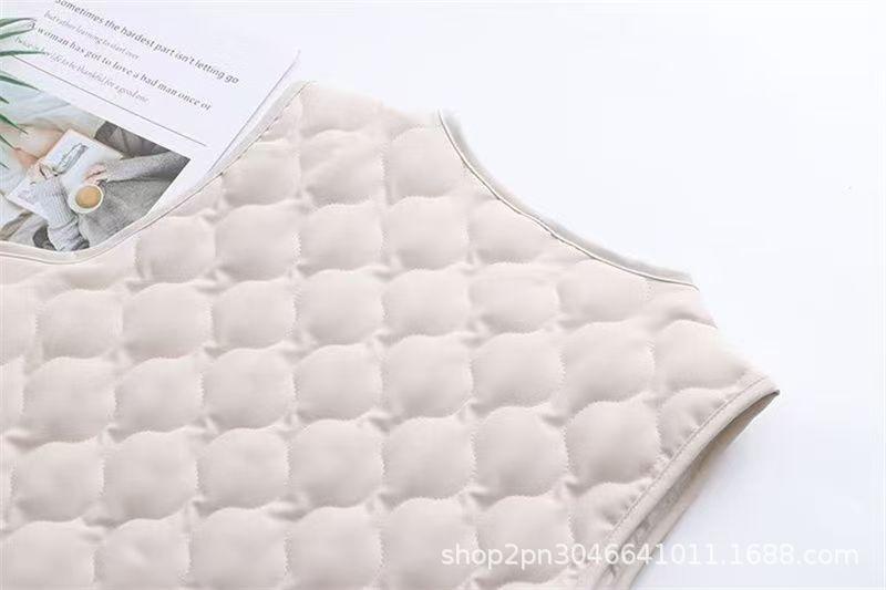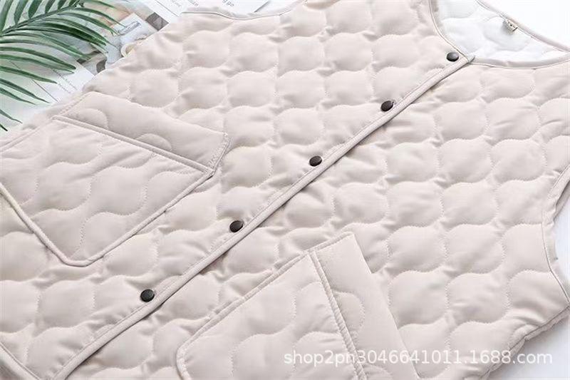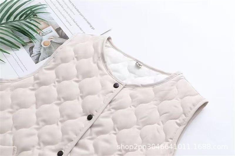 Chaleco de Algodón de Talla Grande para Mujer Chaleco de Cuello Redondo Cálido Chaleco de Invierno 2024 Algodón Gordo mm Versátil Chaleco de Algodón Sin Mangas Aspecto Adelgazante