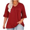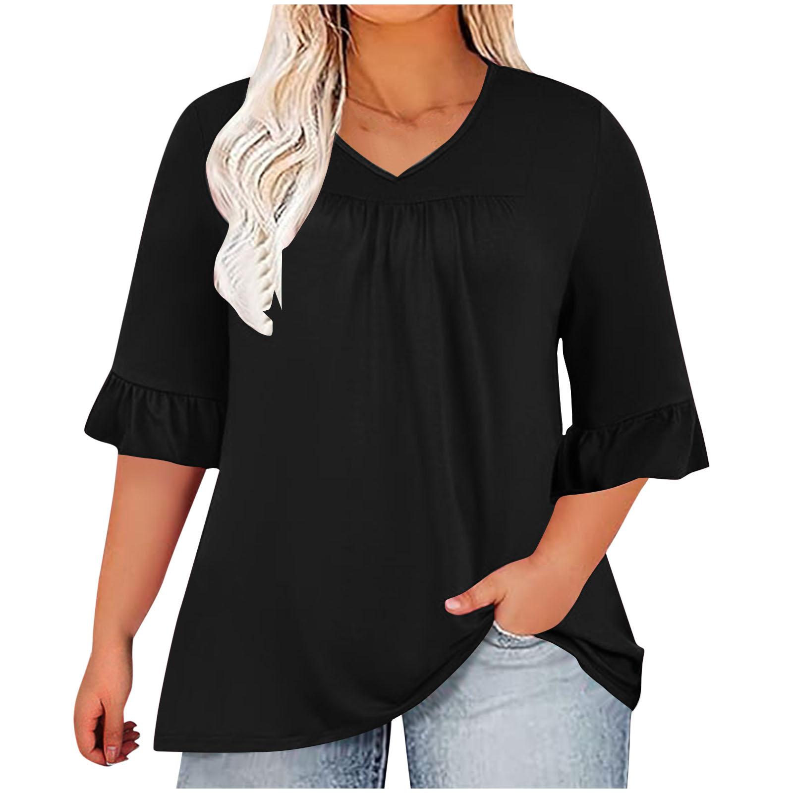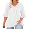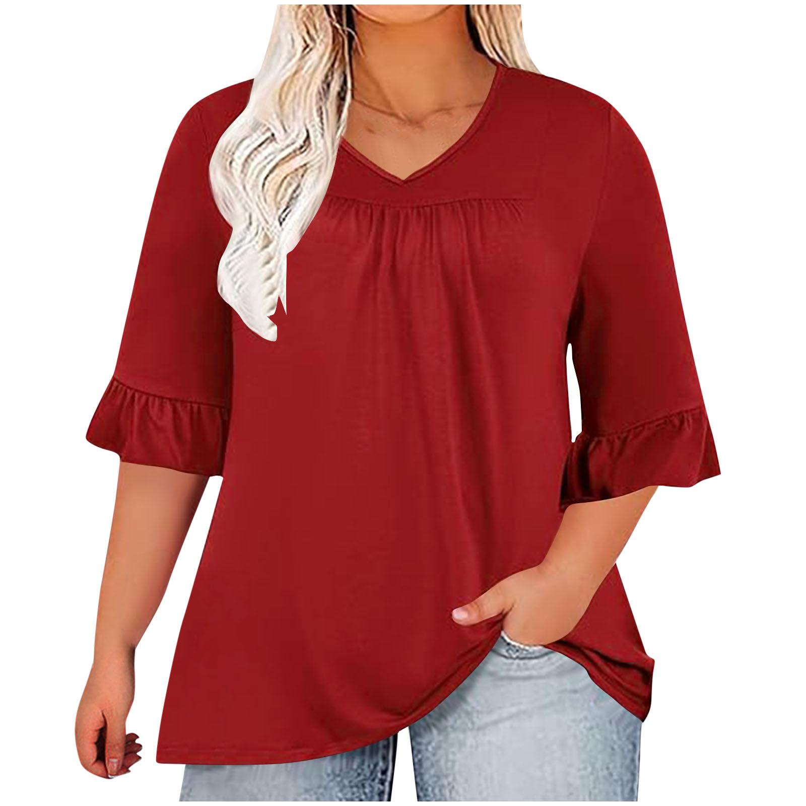 Camisa de algodón holgada y ajustada con mangas con volantes para mujer, talla grande, informal, con cuello en V y pliegues, 2023