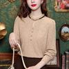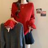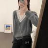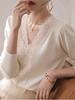 2025 Estación Independiente de Comercio Exterior Transfronterizo_Otoño/Invierno Suelto Manga Larga Auricularia Encaje Top Camiseta Tejida Camiseta Base
