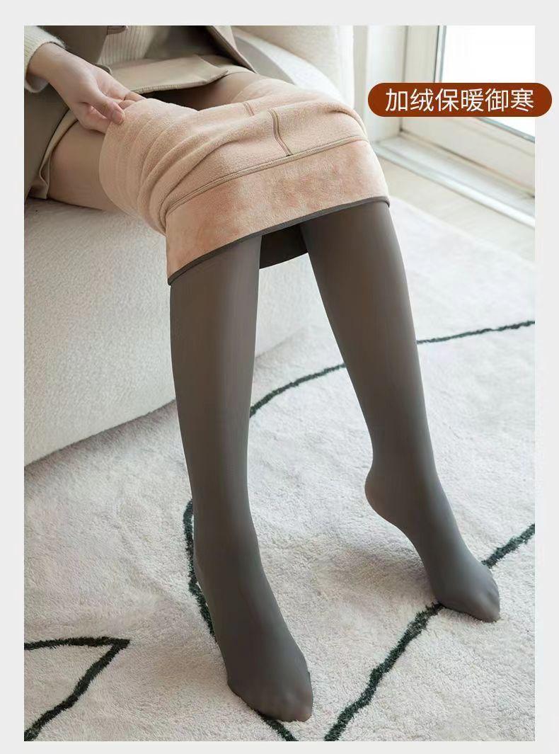 Leggings transparentes falsos para mujer, de seda negra, transparentes reales, para primavera y otoño e invierno, forrados con vellón, gruesos, de una pieza, con pierna ligera, artefacto de color carne, ropa exterior