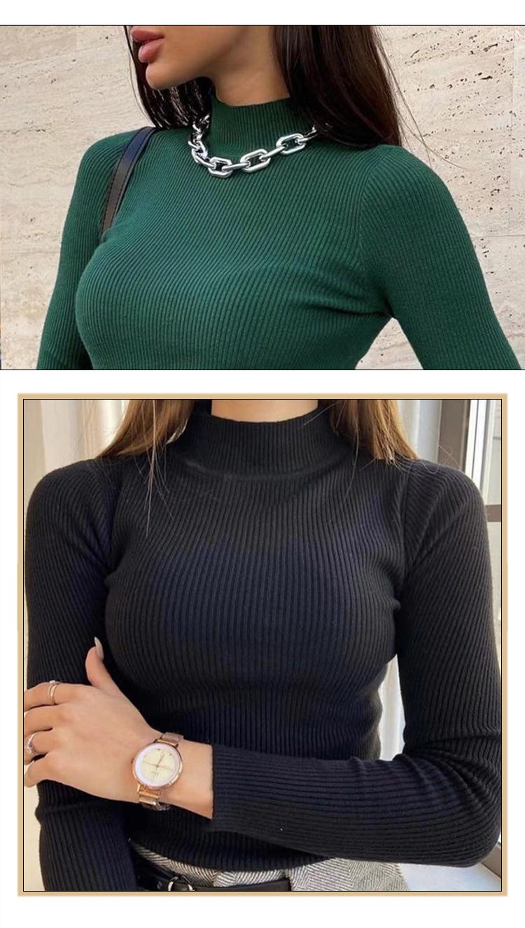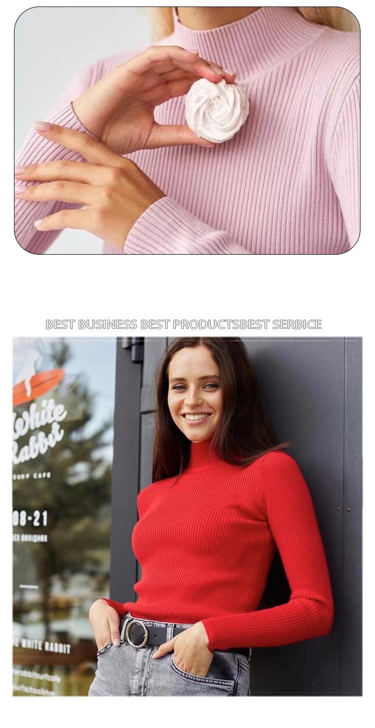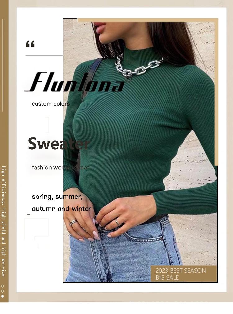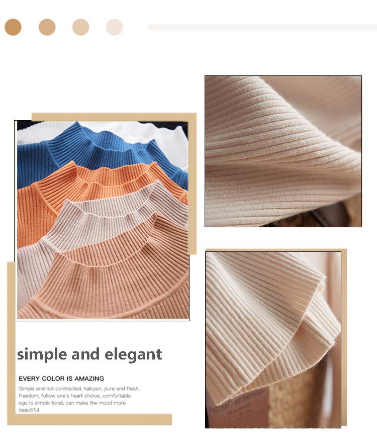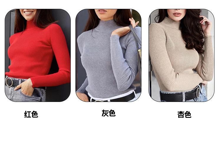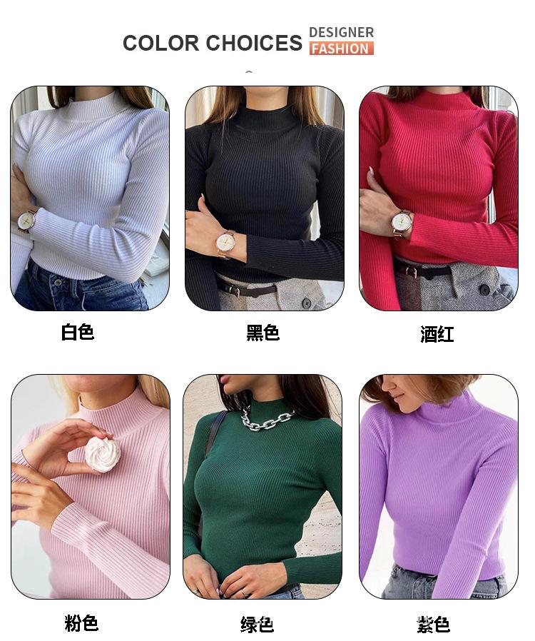 Suéter Europeo y Americano Transfronterizo Aliexpress Amazon Suéter de Cuello Alto Medio Camiseta de Fondo Versátil para Otoño e Invierno para Mujer