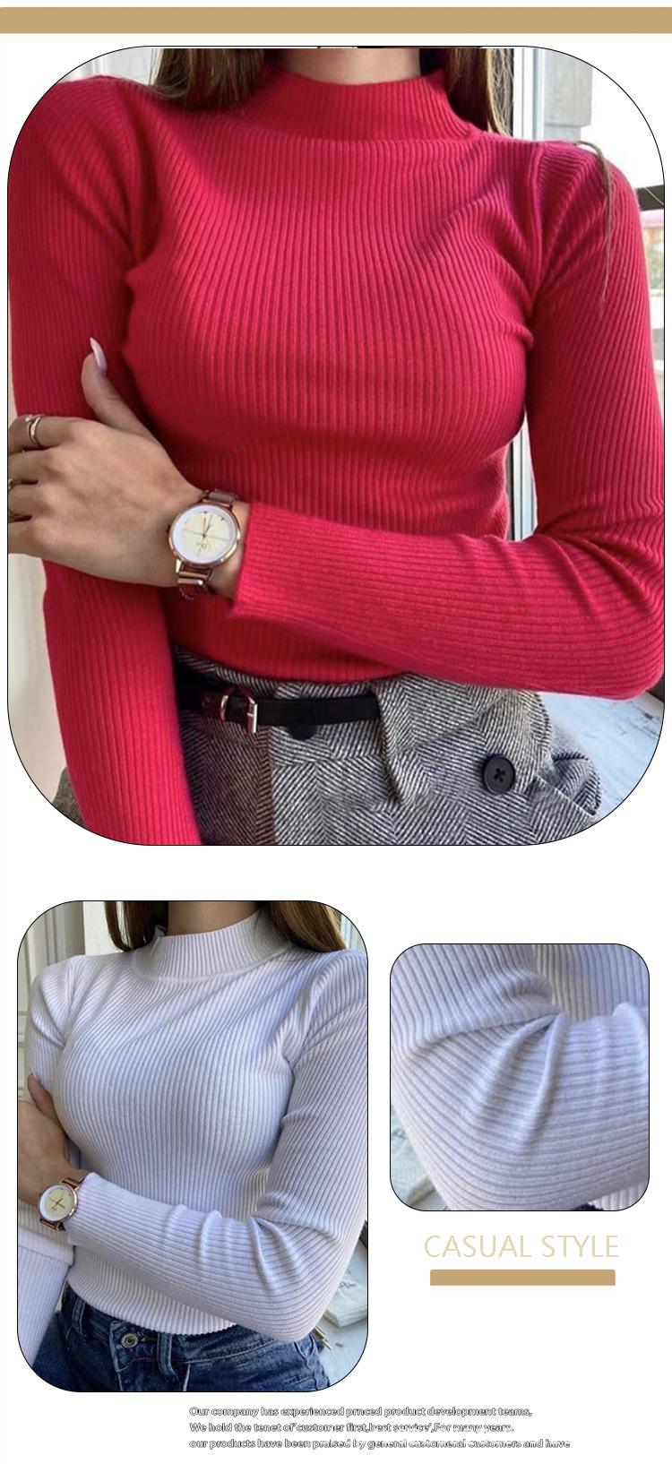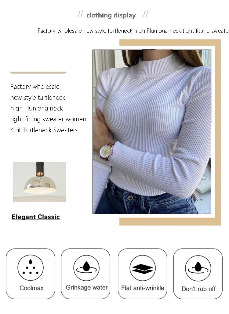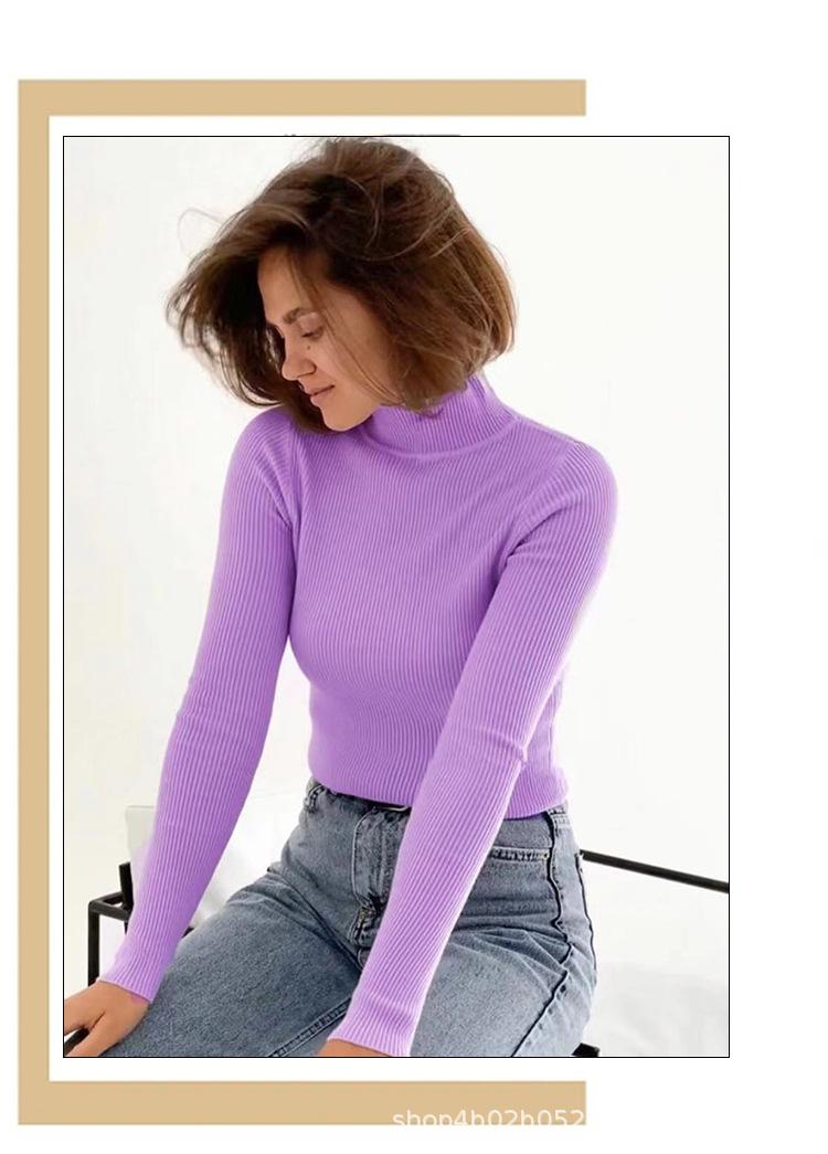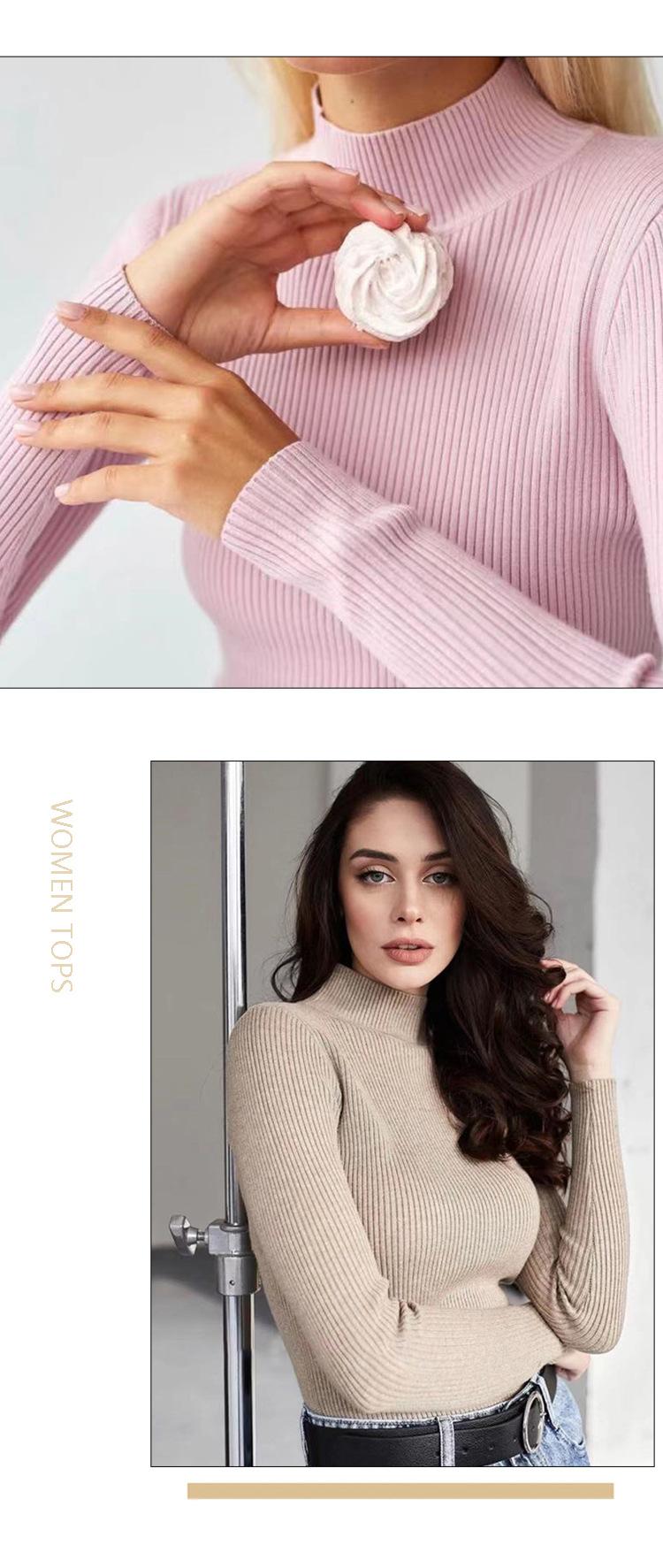 Suéter Europeo y Americano Transfronterizo Aliexpress Amazon Suéter de Cuello Alto Medio Camiseta de Fondo Versátil para Otoño e Invierno para Mujer
