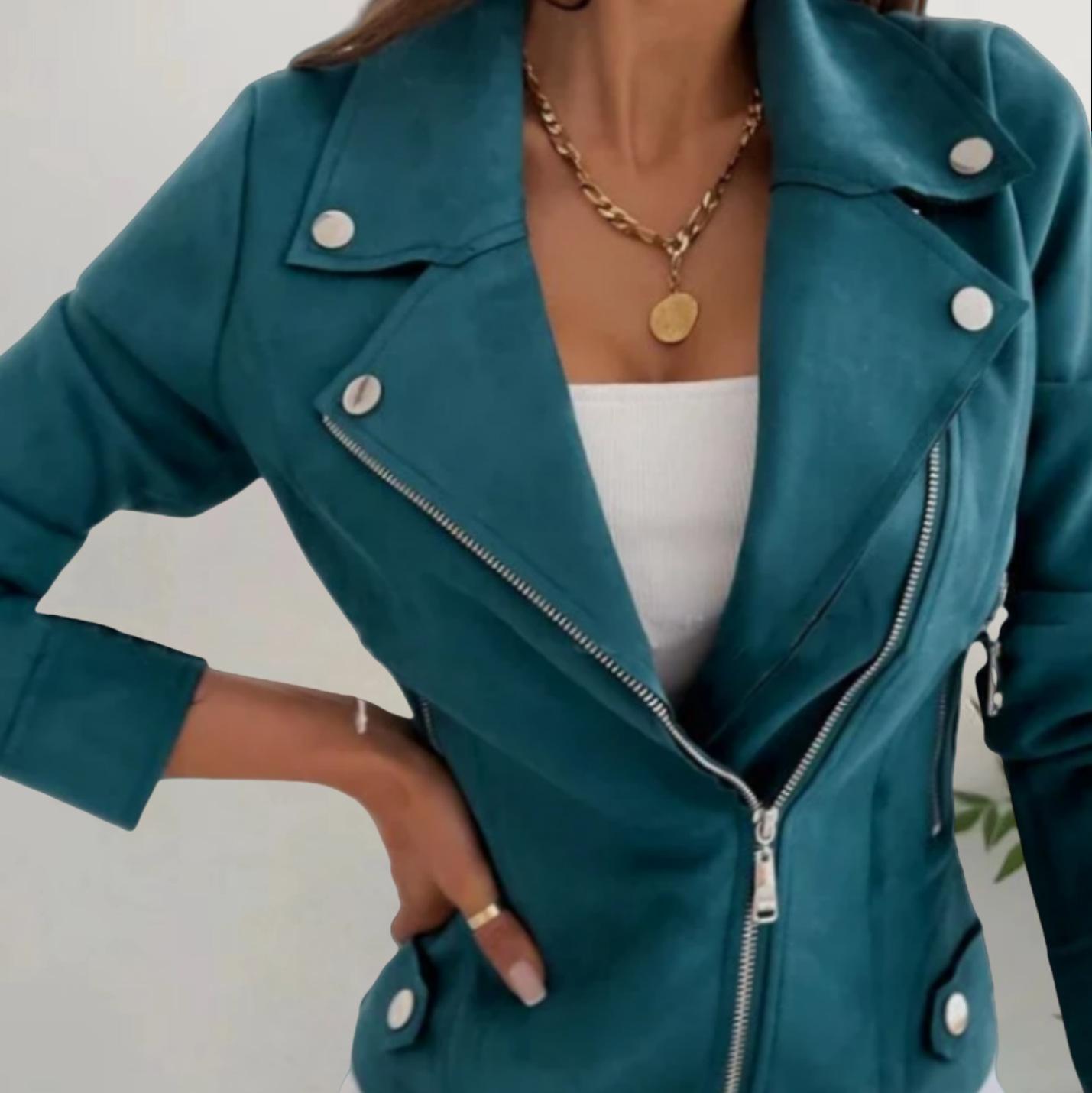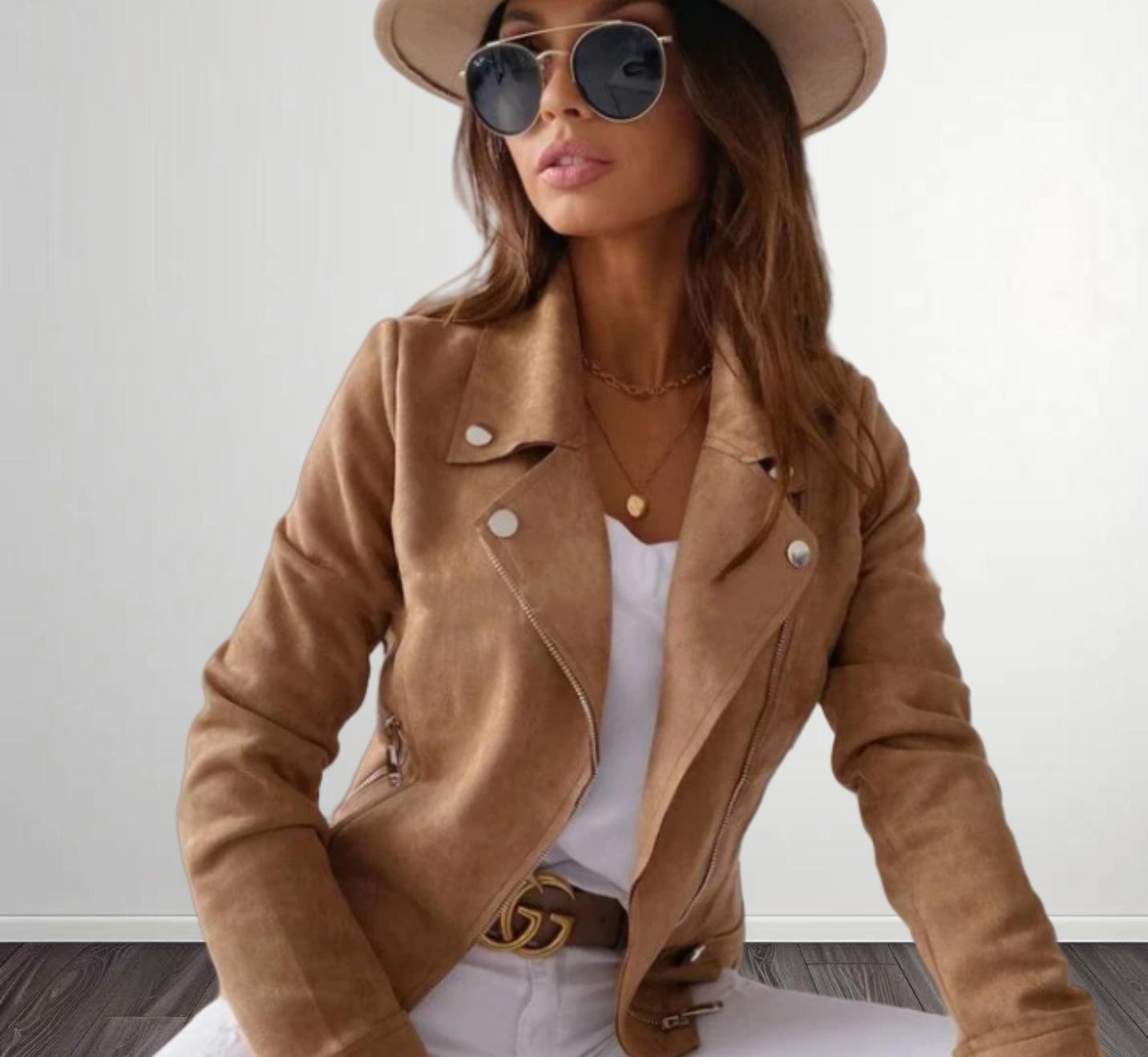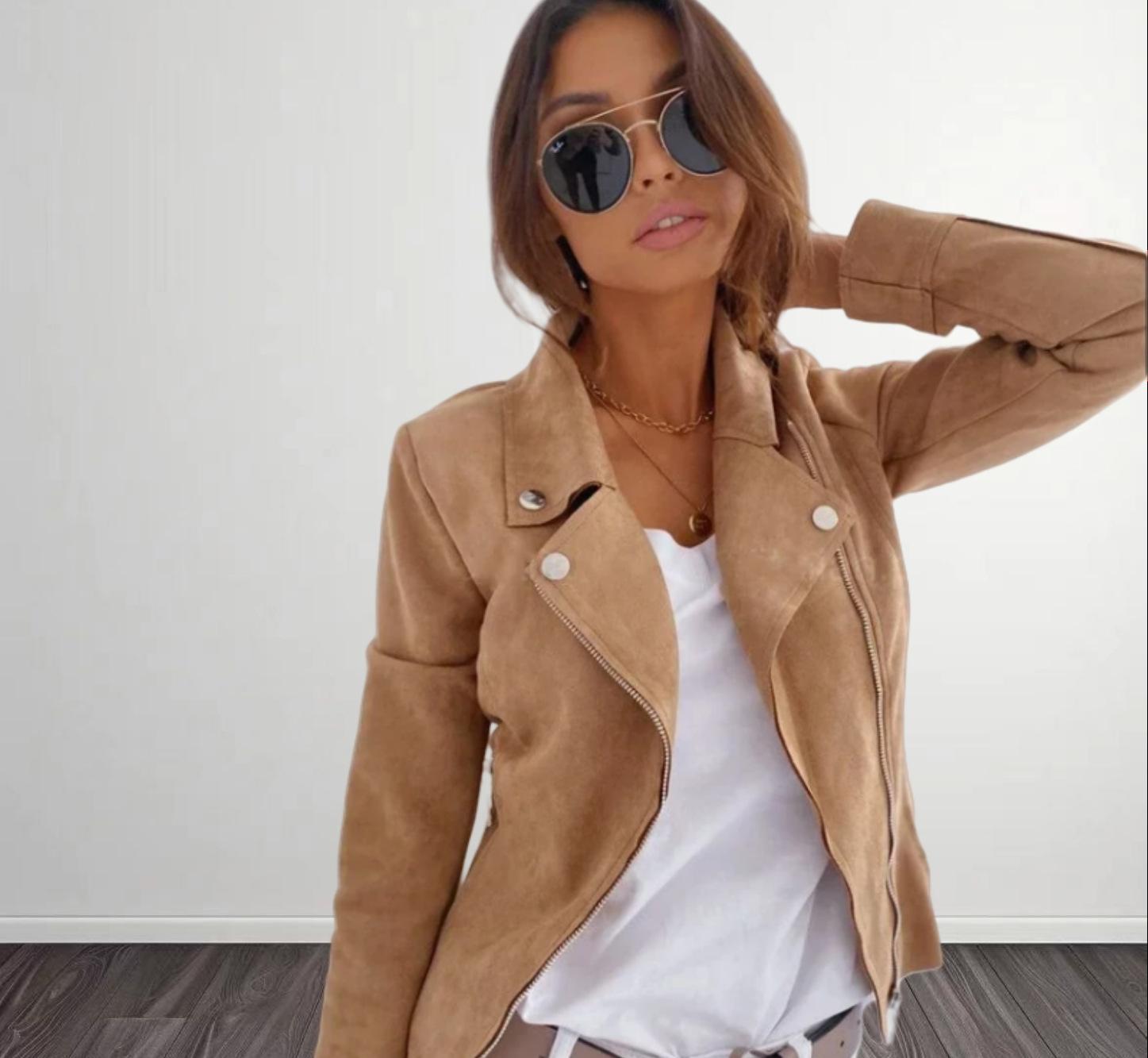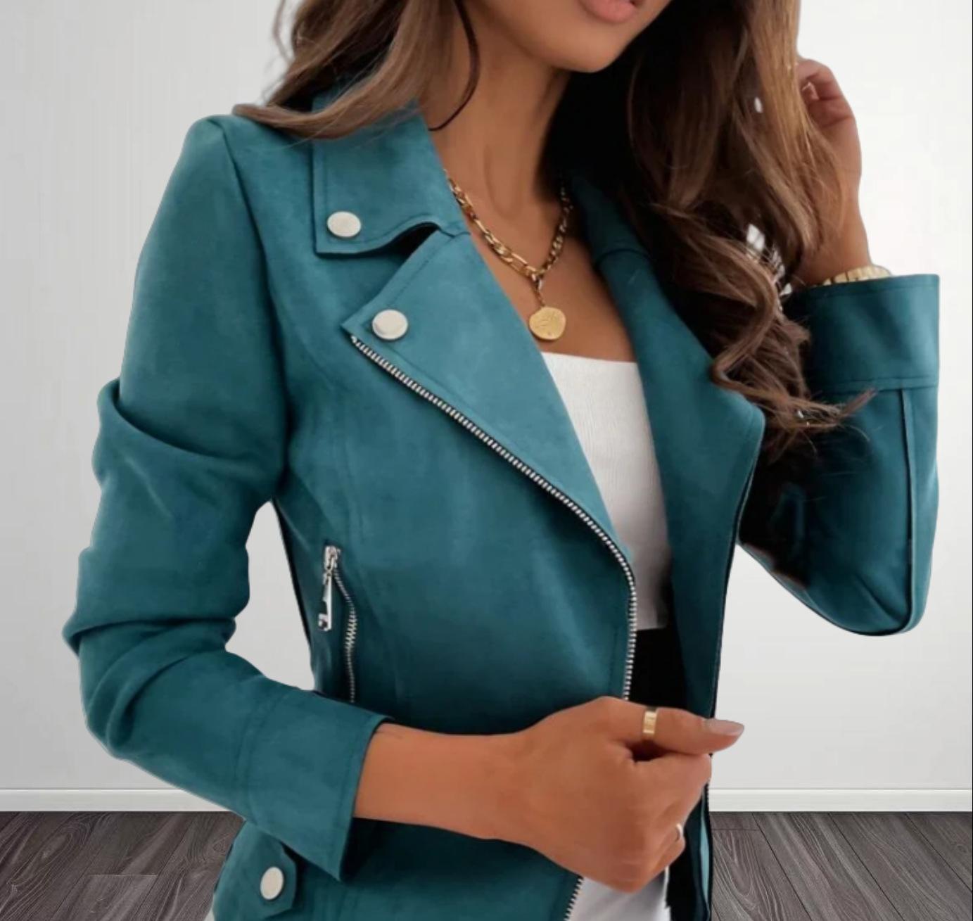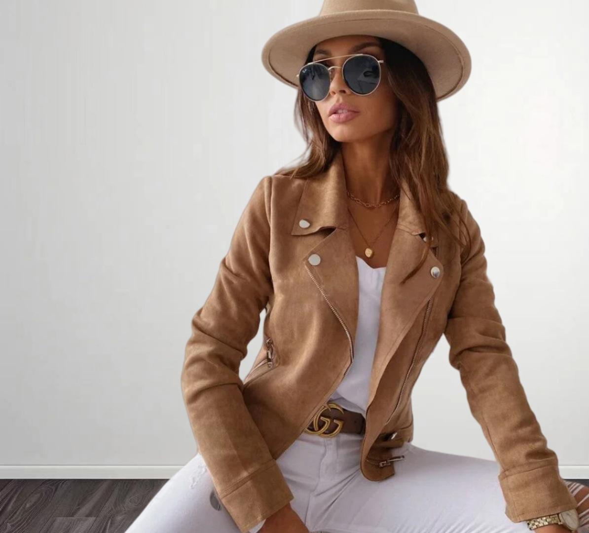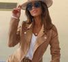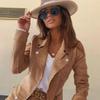Amazon AliExpress Otoño Invierno 2024 Nueva Chaqueta Corta de Ante con Cremallera y Solapa de Color Sólido para Mujer