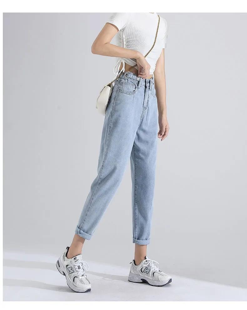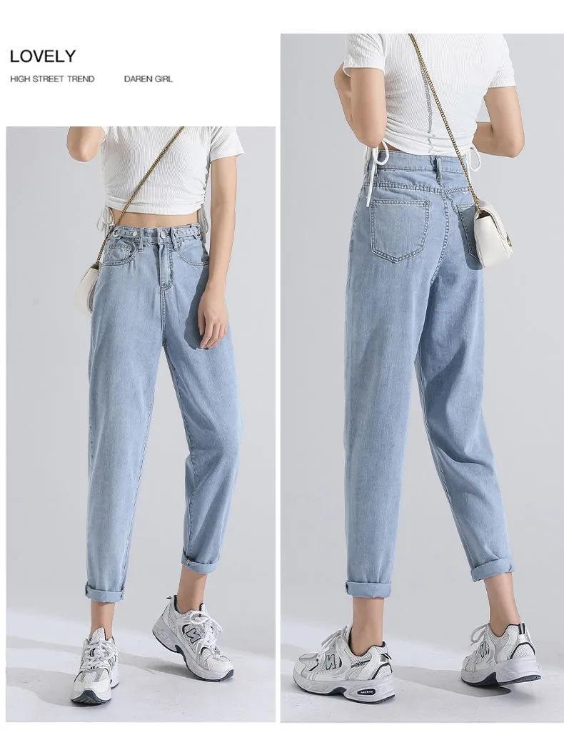 Pantalones Harlan de Verano para Mujer 2024 Nuevos de Cintura Alta Delgados de Pierna Recta Sueltos Zanahoria Marca Pequeña de Moda Pantalones de Papá