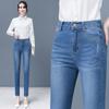 Vaqueros negros pequeños y rectos para mujer, otoño e invierno, nuevos pantalones de tubo ajustados, elásticos y de cintura alta que combinan con todo, a la moda.