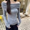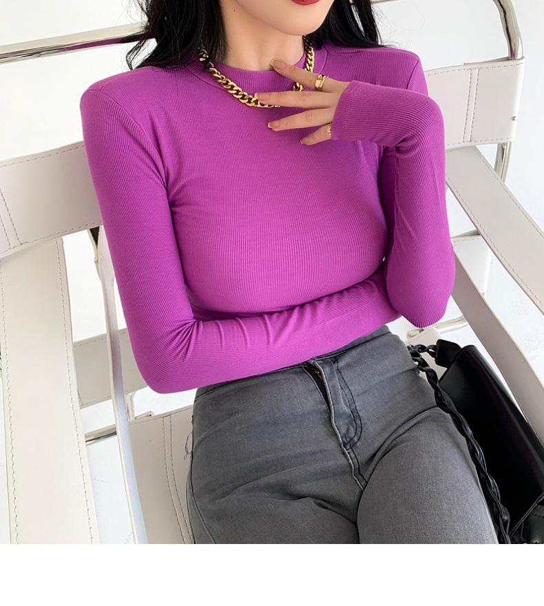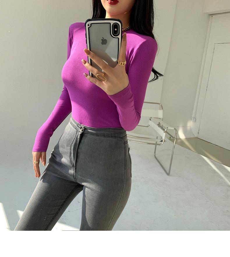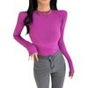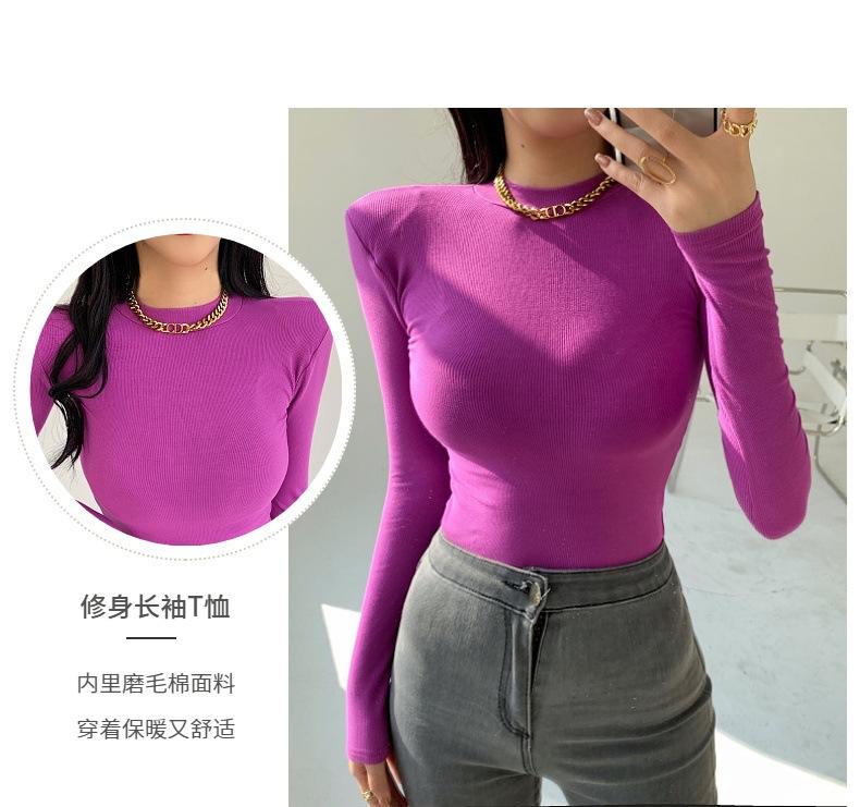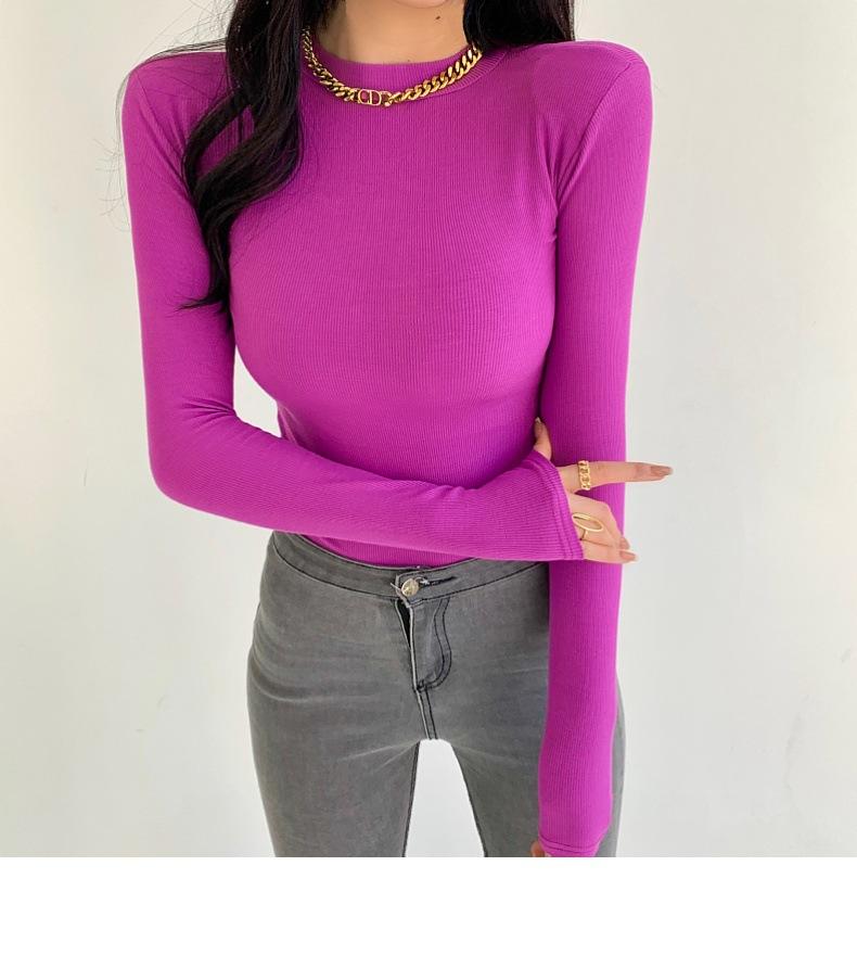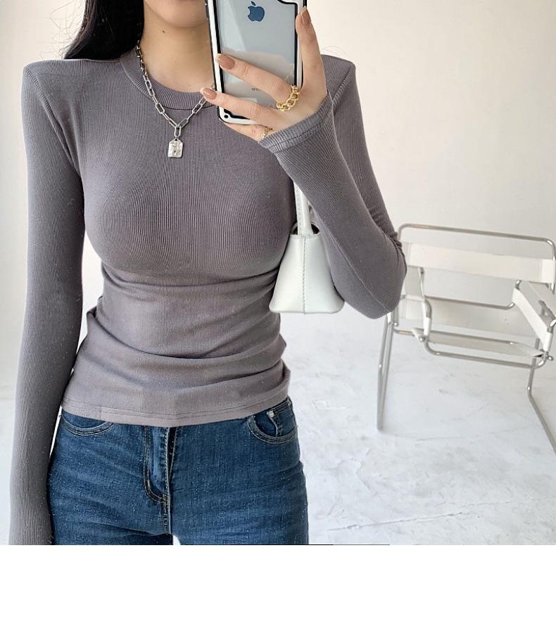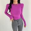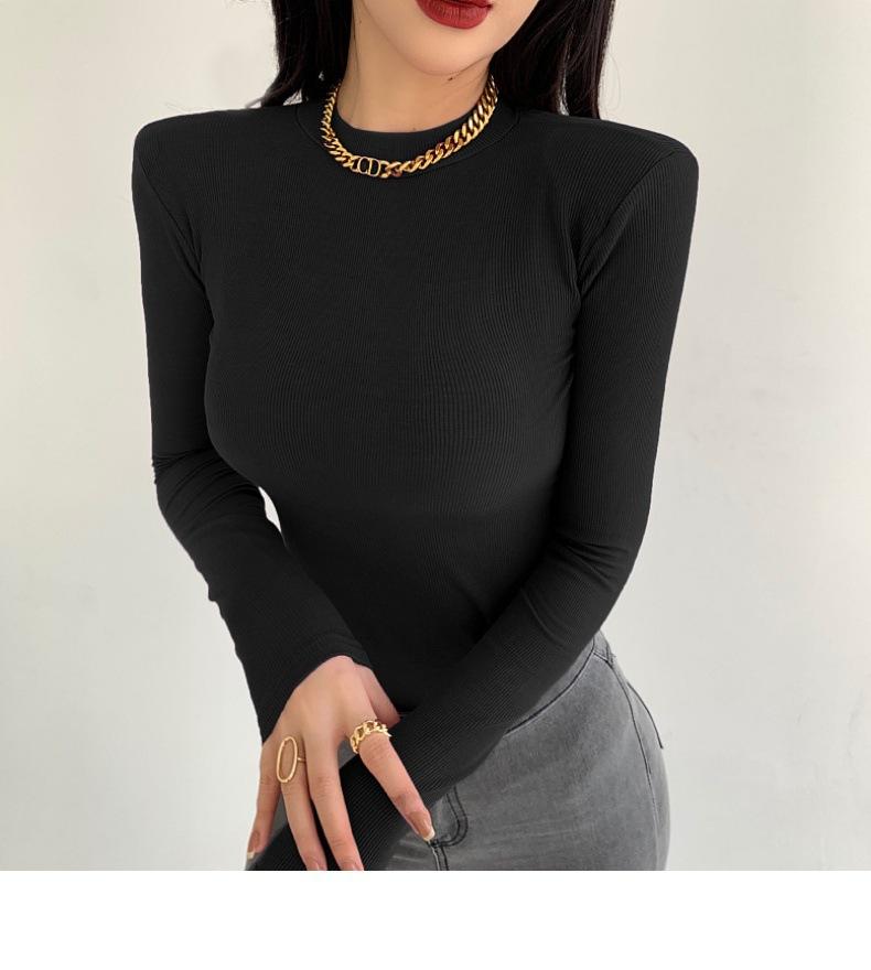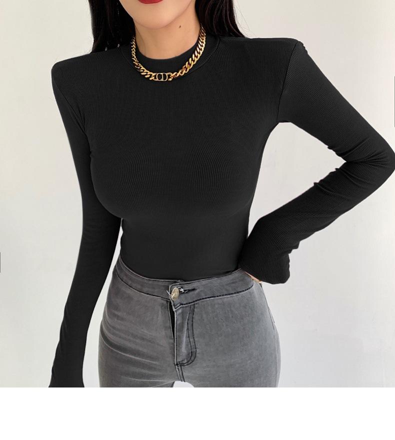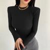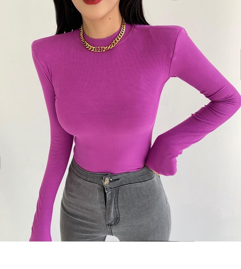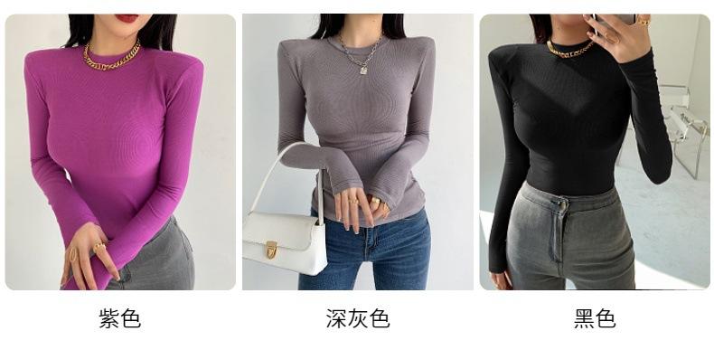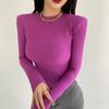Camiseta de manga larga cómoda y ajustada con hombreras para mujer, estilo coreano, otoño e invierno, nueva, color liso, elástica y de moda.