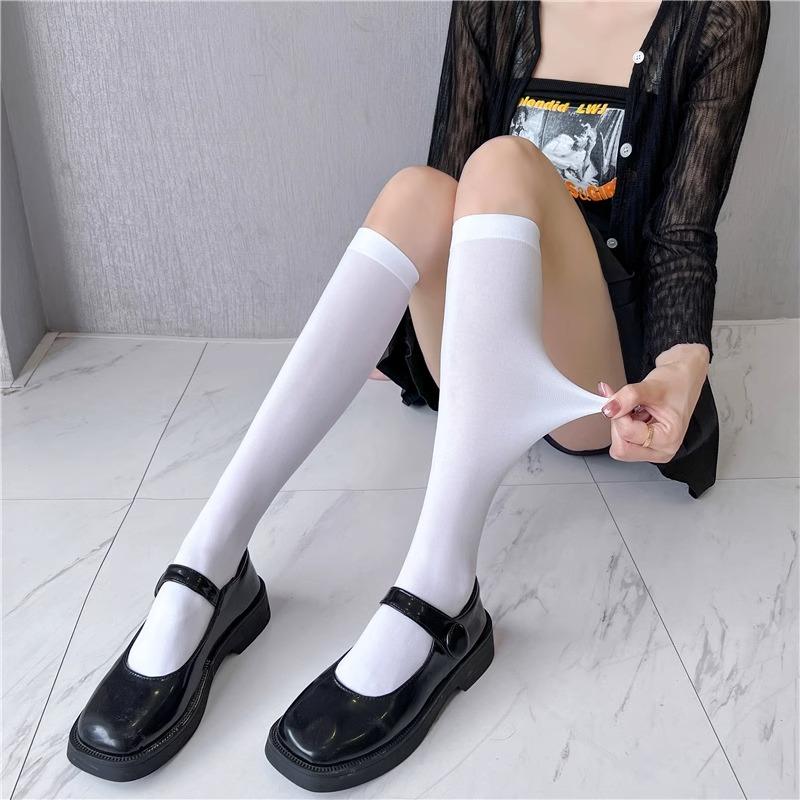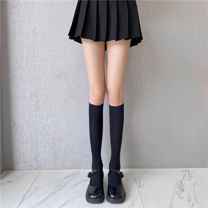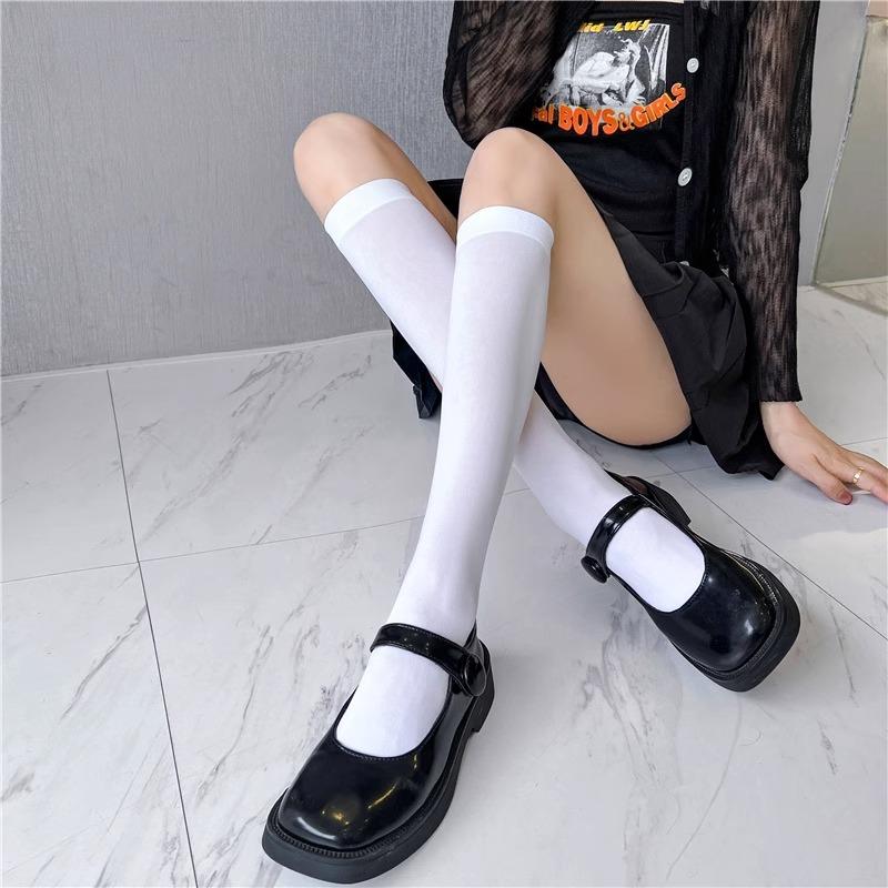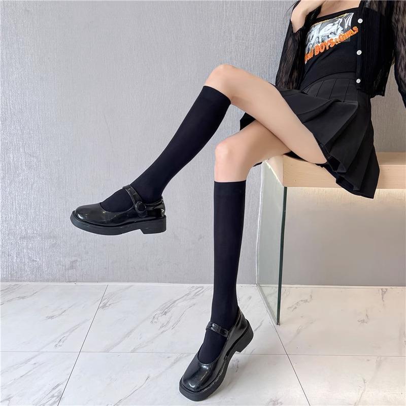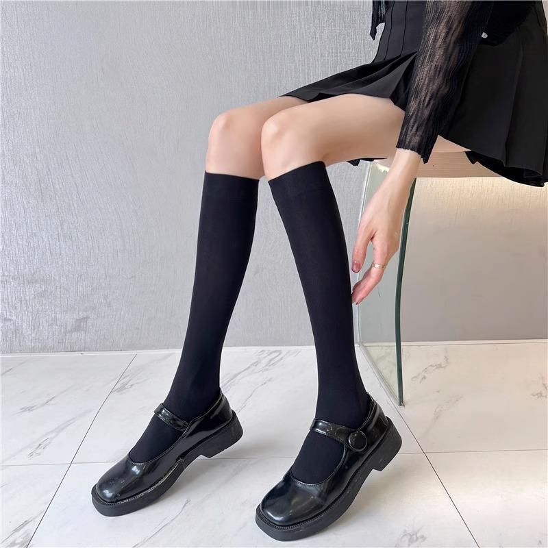Calcetines Negros de Media Caña para Mujer, Estilo Primavera y Otoño, Calcetines Altos Largos por Encima de la Rodilla, Calcetines de Verano Jk hasta la Pantorrilla, Estilo Japonés