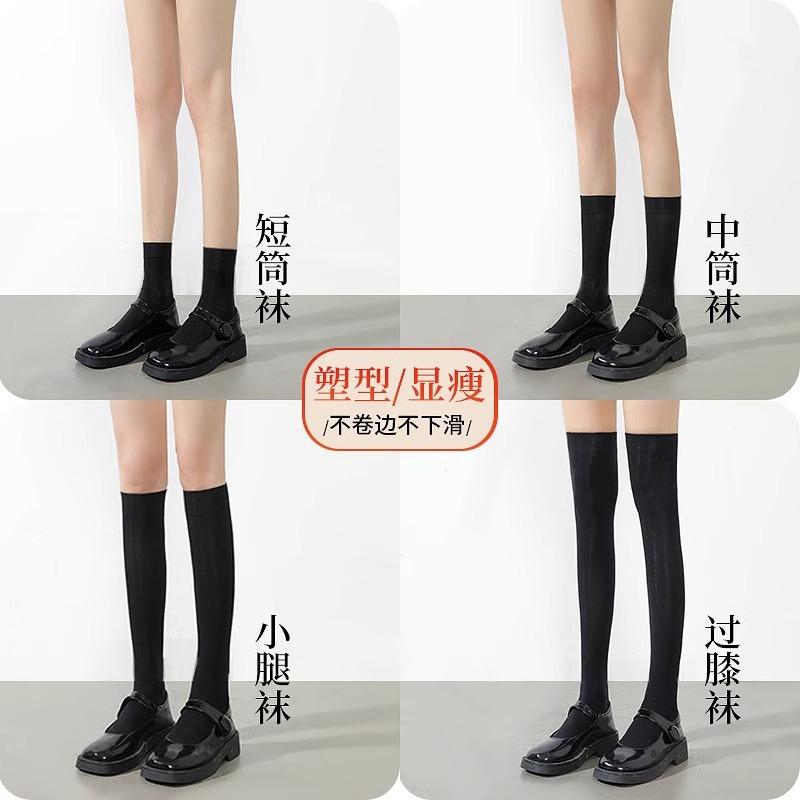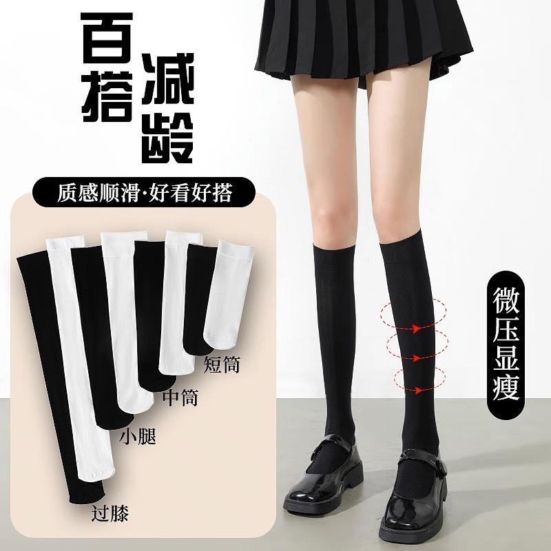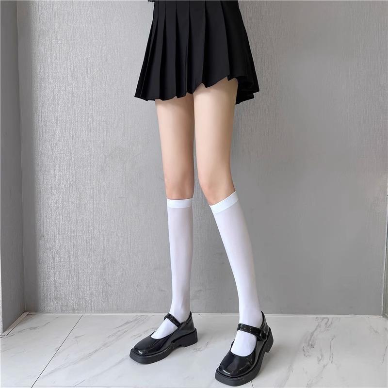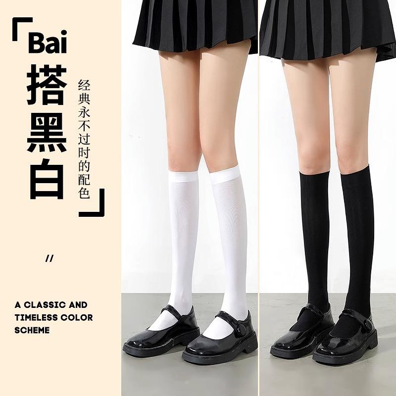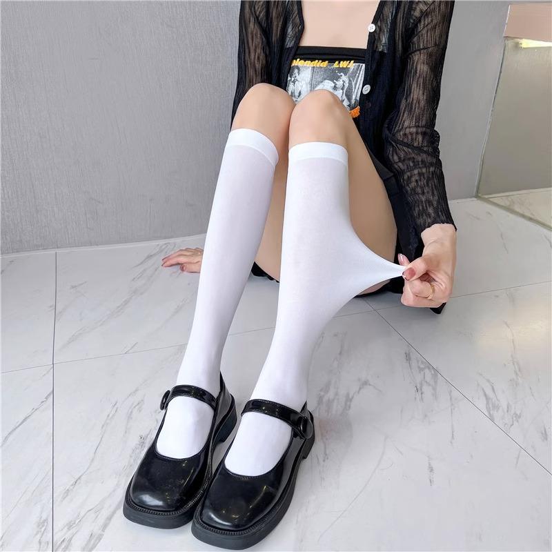 Calcetines Negros de Media Caña para Mujer, Estilo Primavera y Otoño, Calcetines Altos Largos por Encima de la Rodilla, Calcetines de Verano Jk hasta la Pantorrilla, Estilo Japonés
