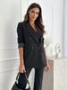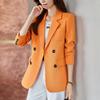Chaqueta de traje elegante de manga larga con cuello cruzado, estilo informal, de otoño 2024, ajustada, de color liso