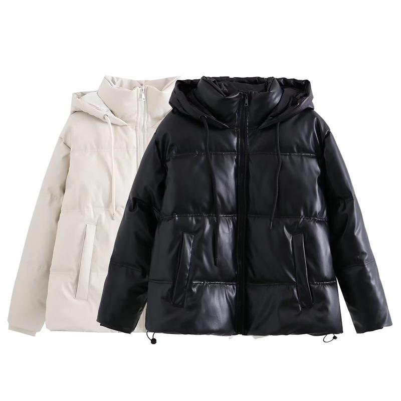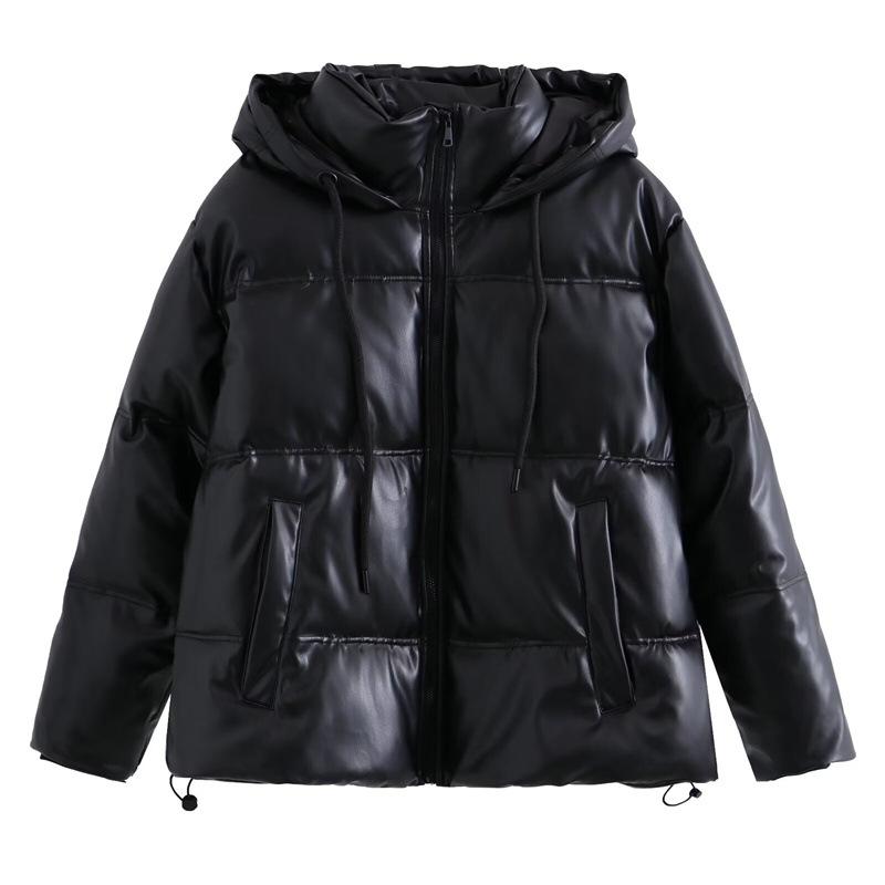 Ropa de otoño e invierno para mujer, abrigo de algodón de color liso de estilo europeo y americano, ropa de pan, abrigo informal acolchado de algodón, chaqueta de PU, chaqueta de cuero de aerolínea.