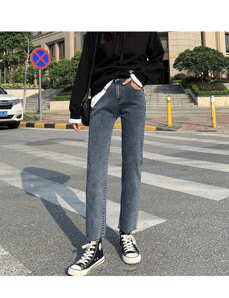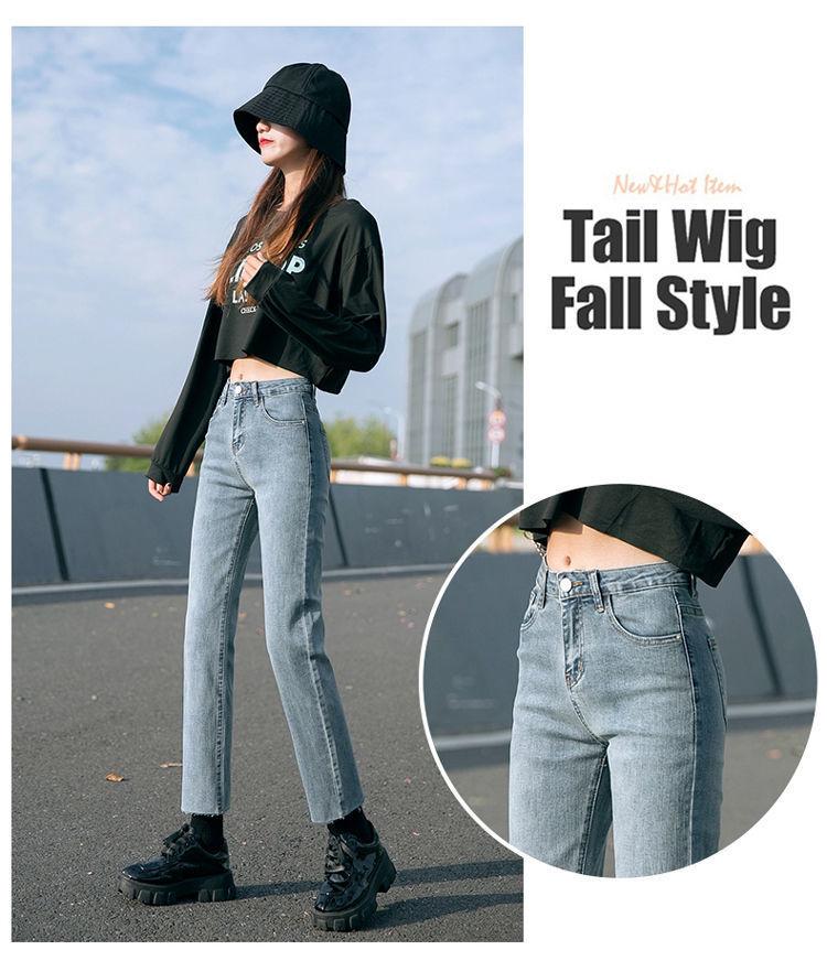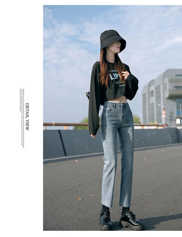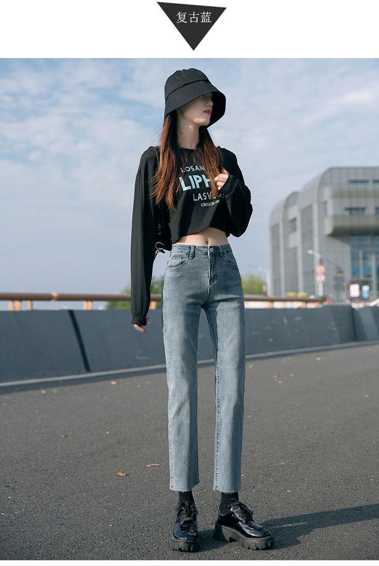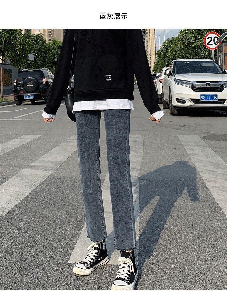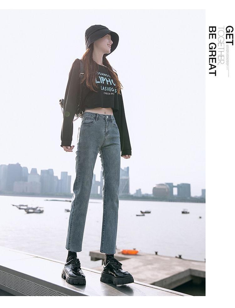 Vaqueros rectos negros para mujer, primavera y otoño, nuevos pantalones cortos casuales versátiles de cintura alta y adelgazantes.