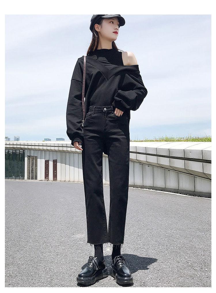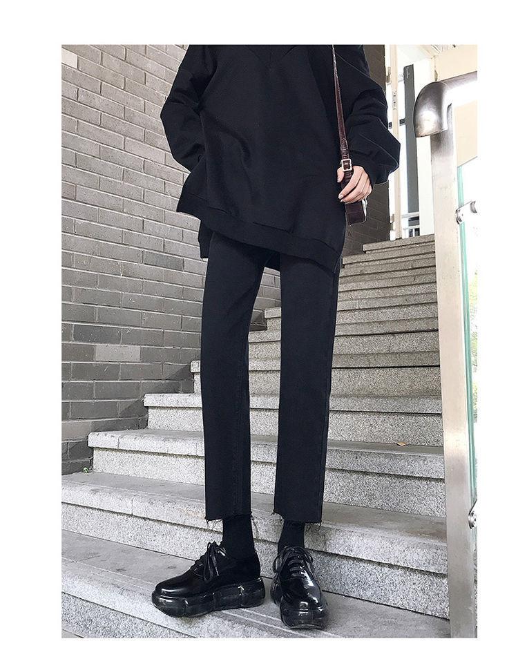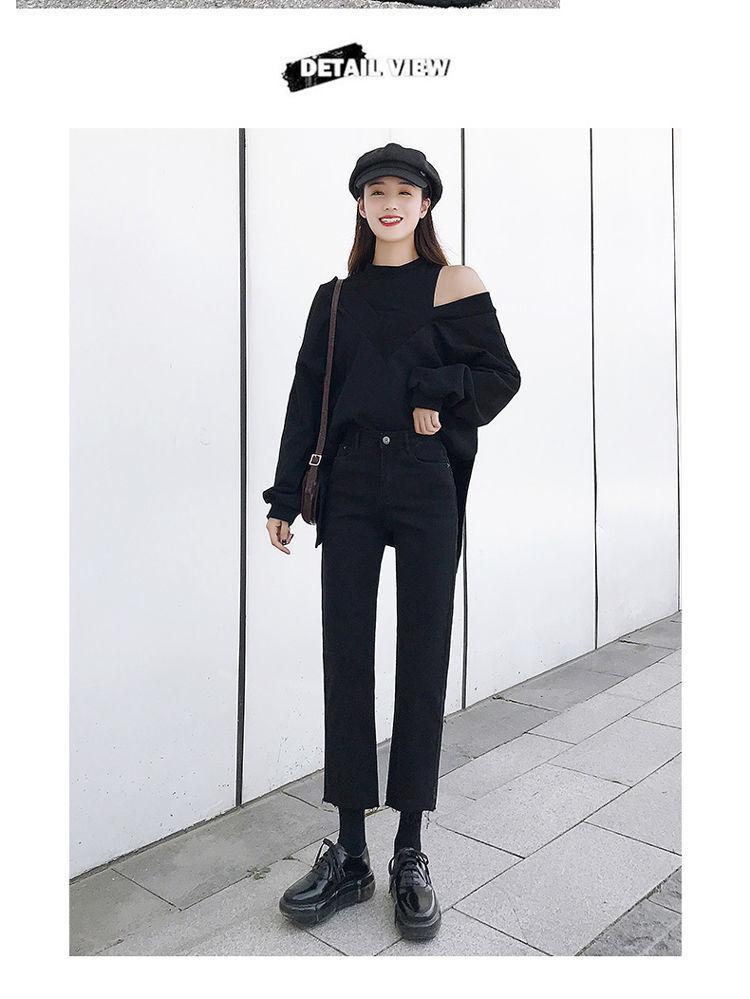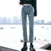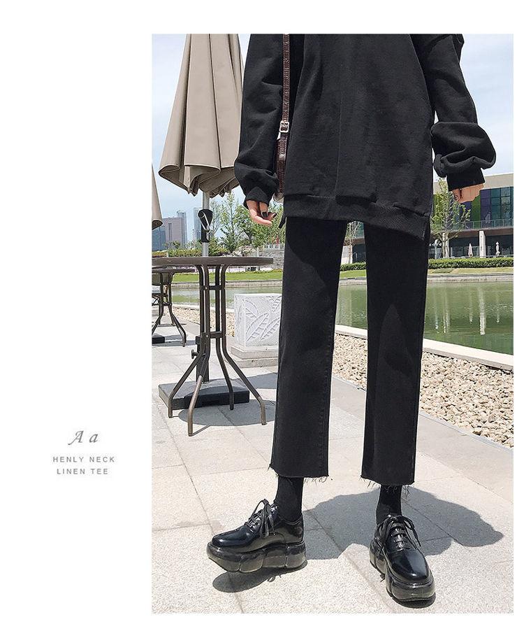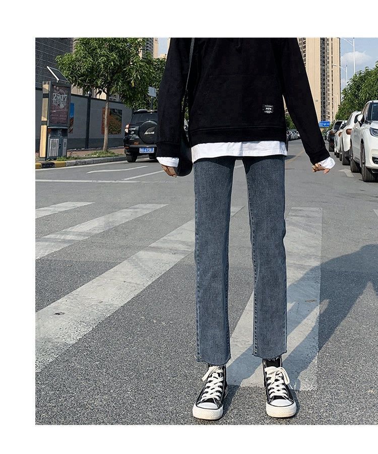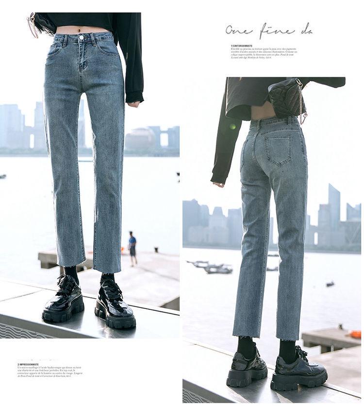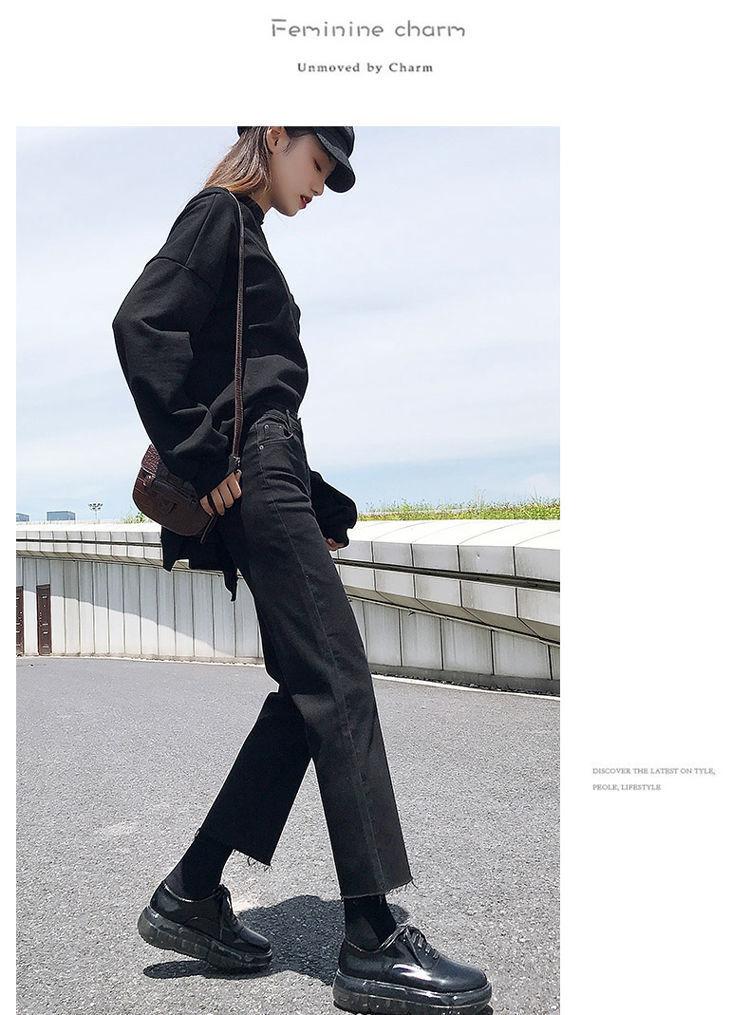 Vaqueros rectos negros para mujer, primavera y otoño, nuevos pantalones cortos casuales versátiles de cintura alta y adelgazantes.
