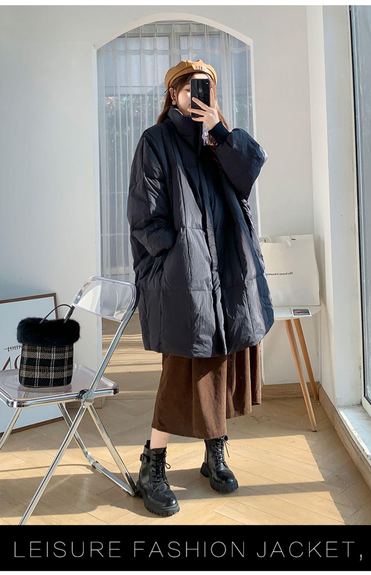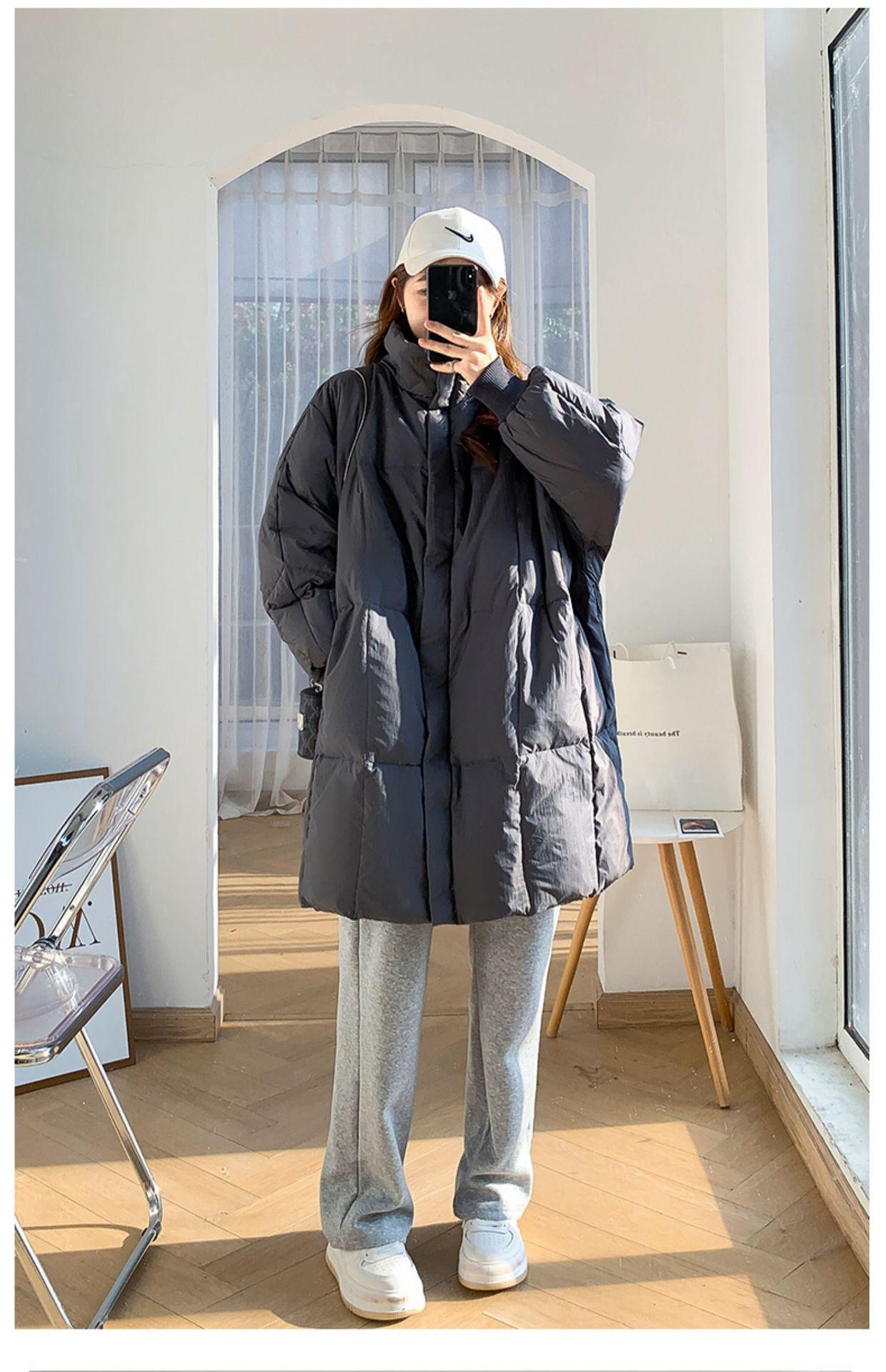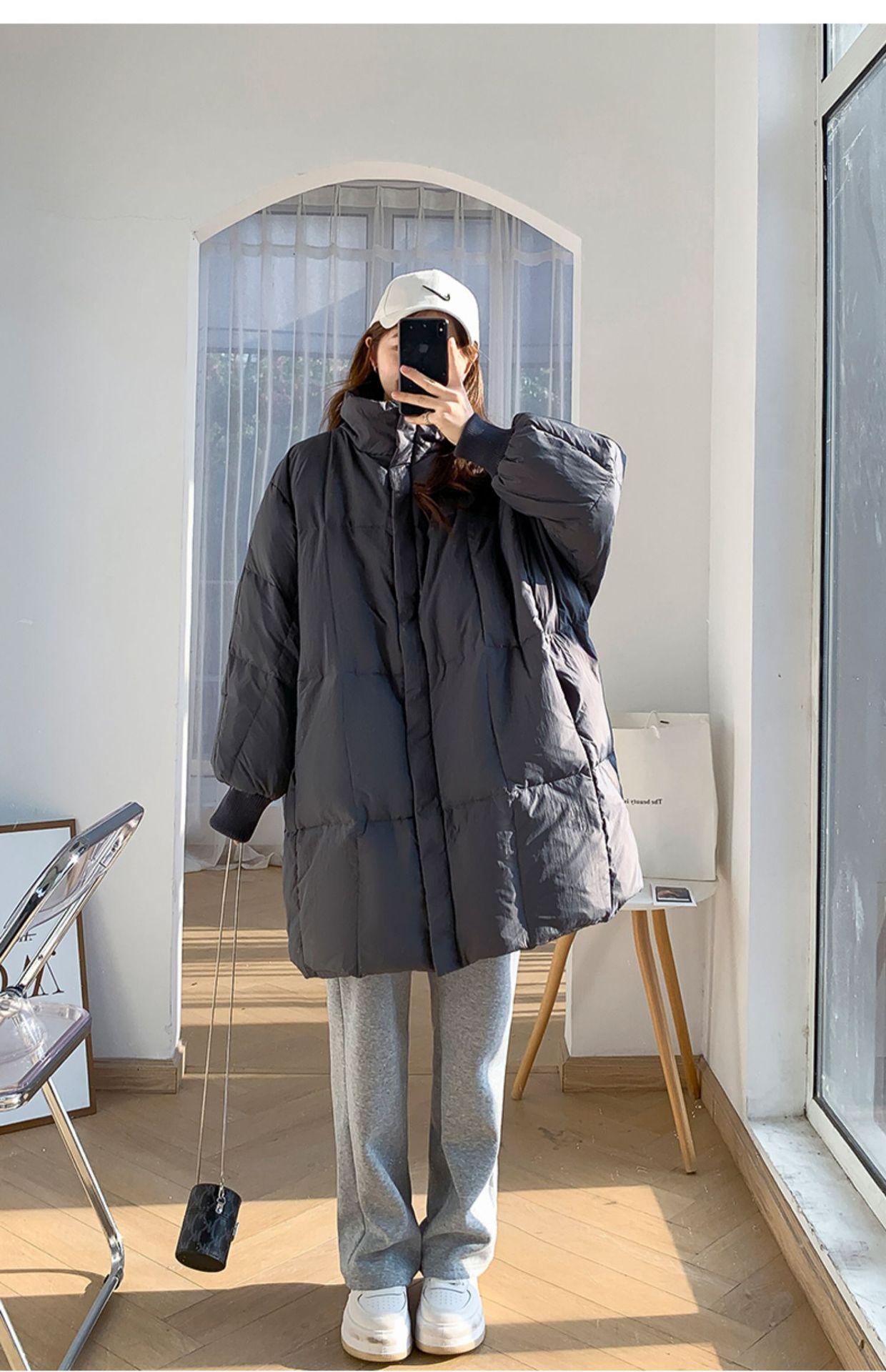 Abrigo de Algodón Acolchado de Invierno para Mujer 2025 Estilo Coreano de Largo Medio, Chaqueta de Algodón Suelta y Elegante por Encima de la Rodilla