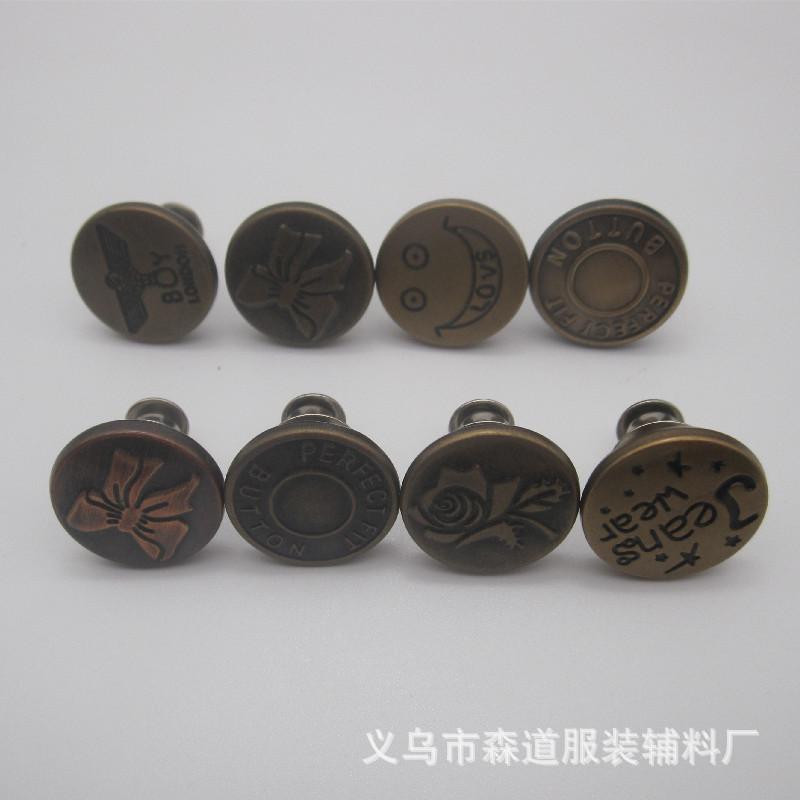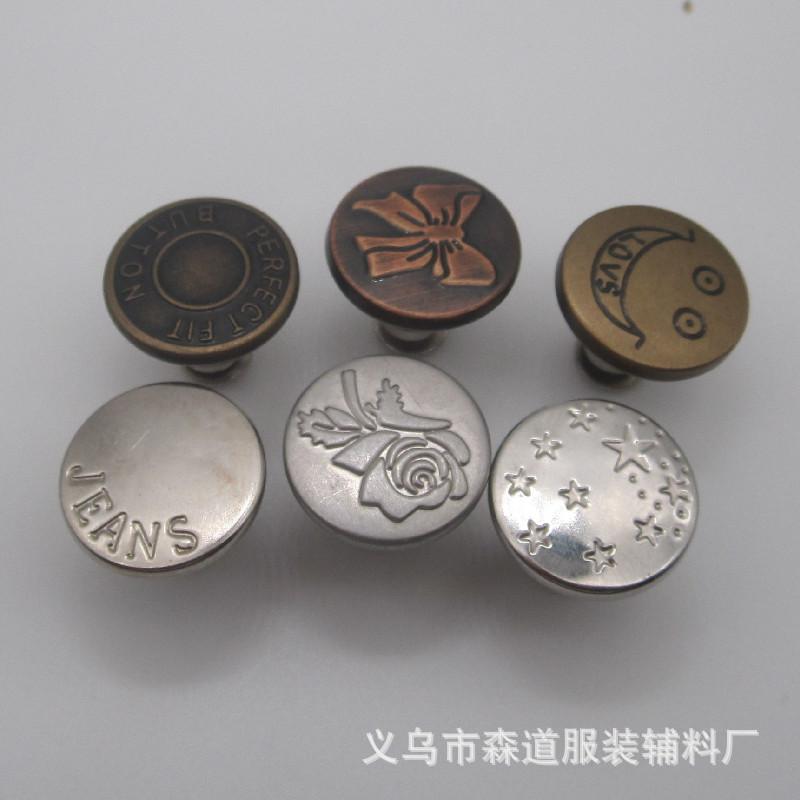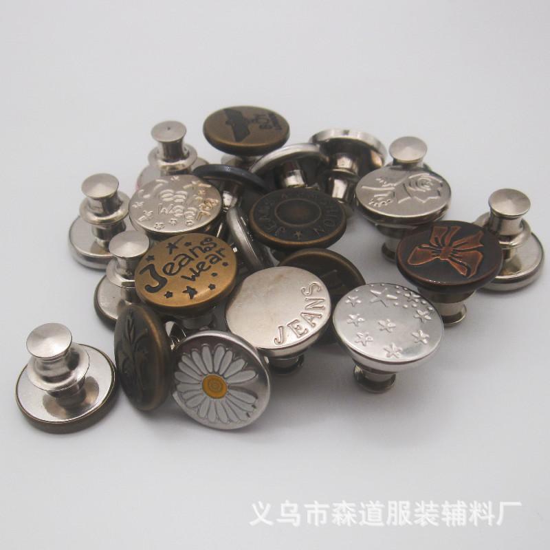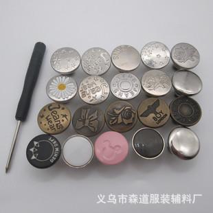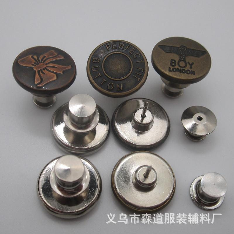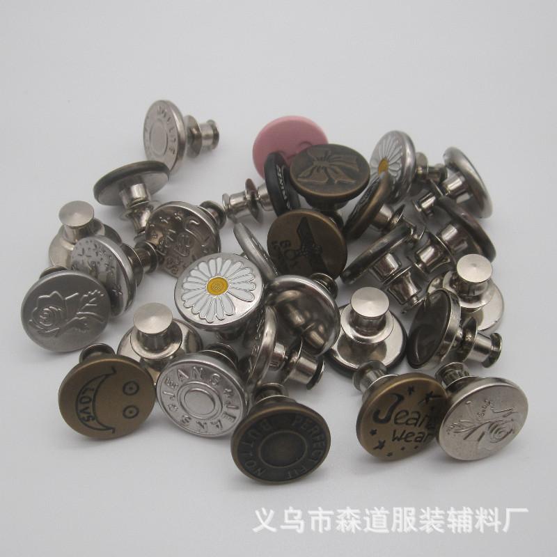 Botón de jeans desmontable sin costuras de 17 mm en forma de I, botón de cintura sin perforaciones