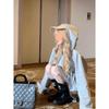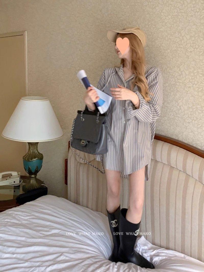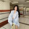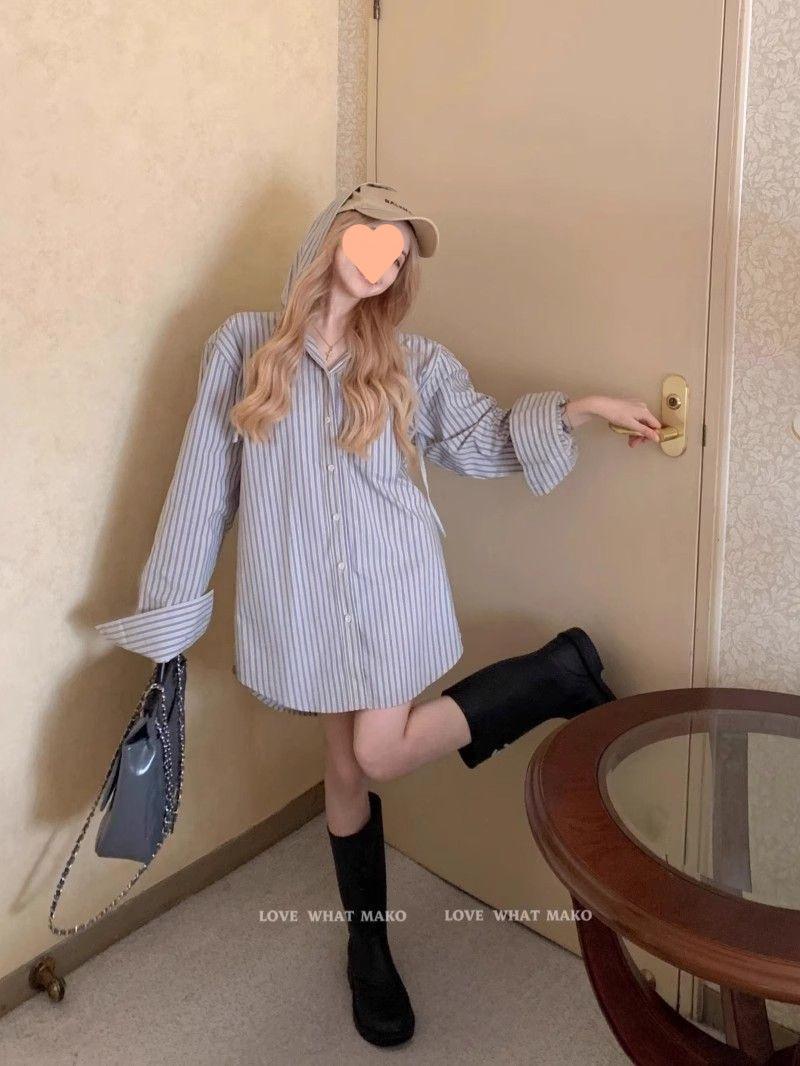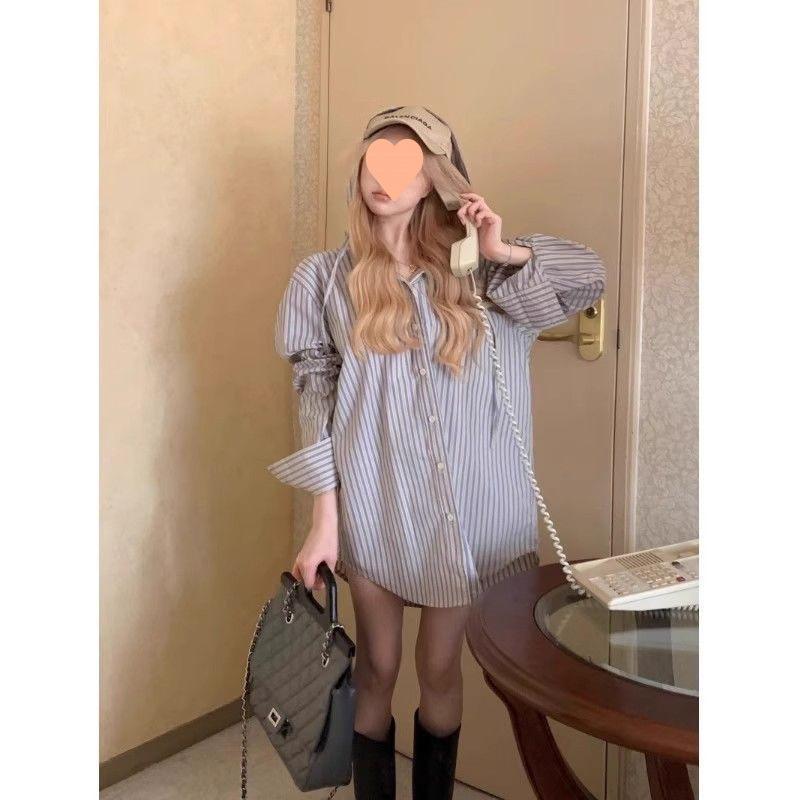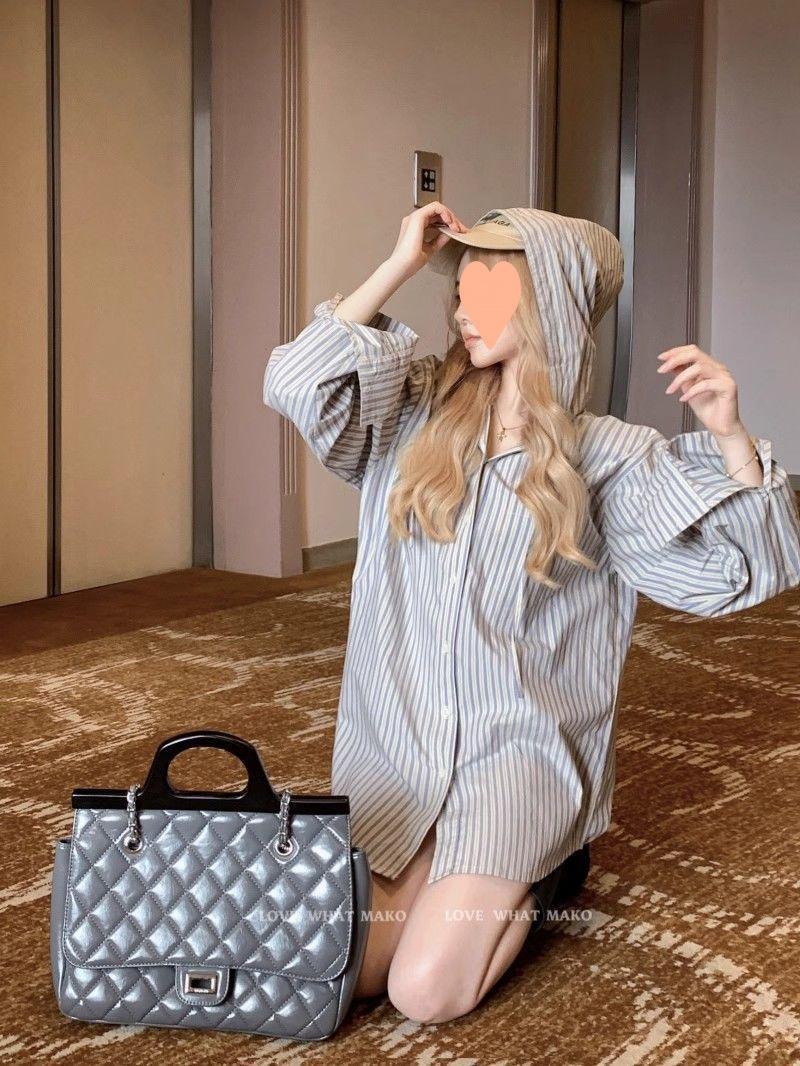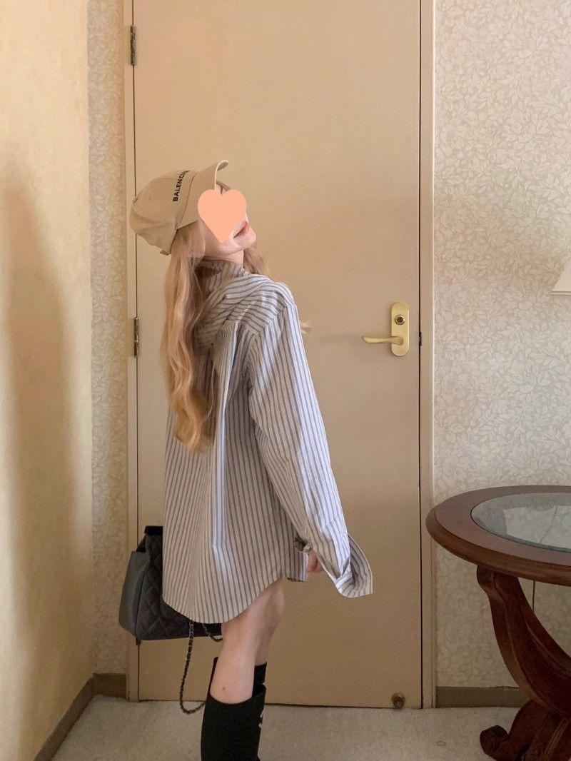 Chaqueta a rayas de manga larga con capucha Design Sense, camisa informal holgada de protección solar, top de longitud media