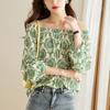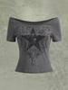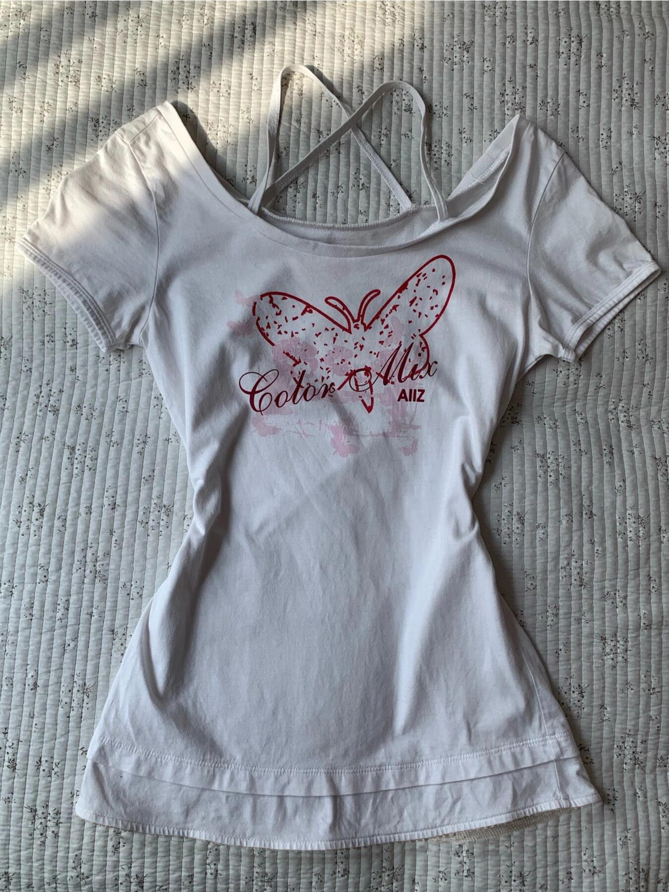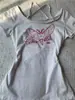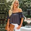 Top informal de verano americano con hombros descubiertos y estampado de mariposas, ajustado, de puro deseo, venta al por mayor, de manga corta transfronteriza