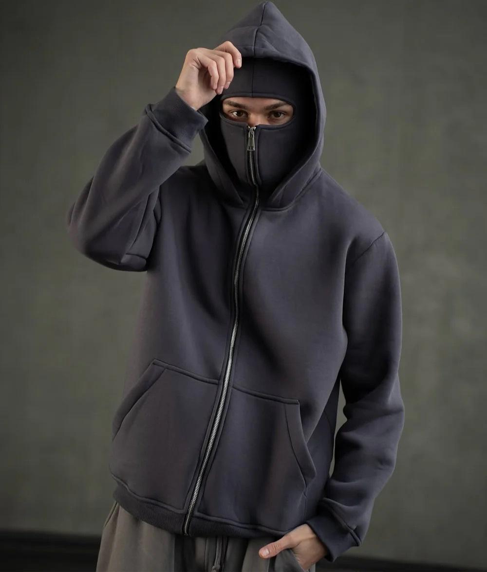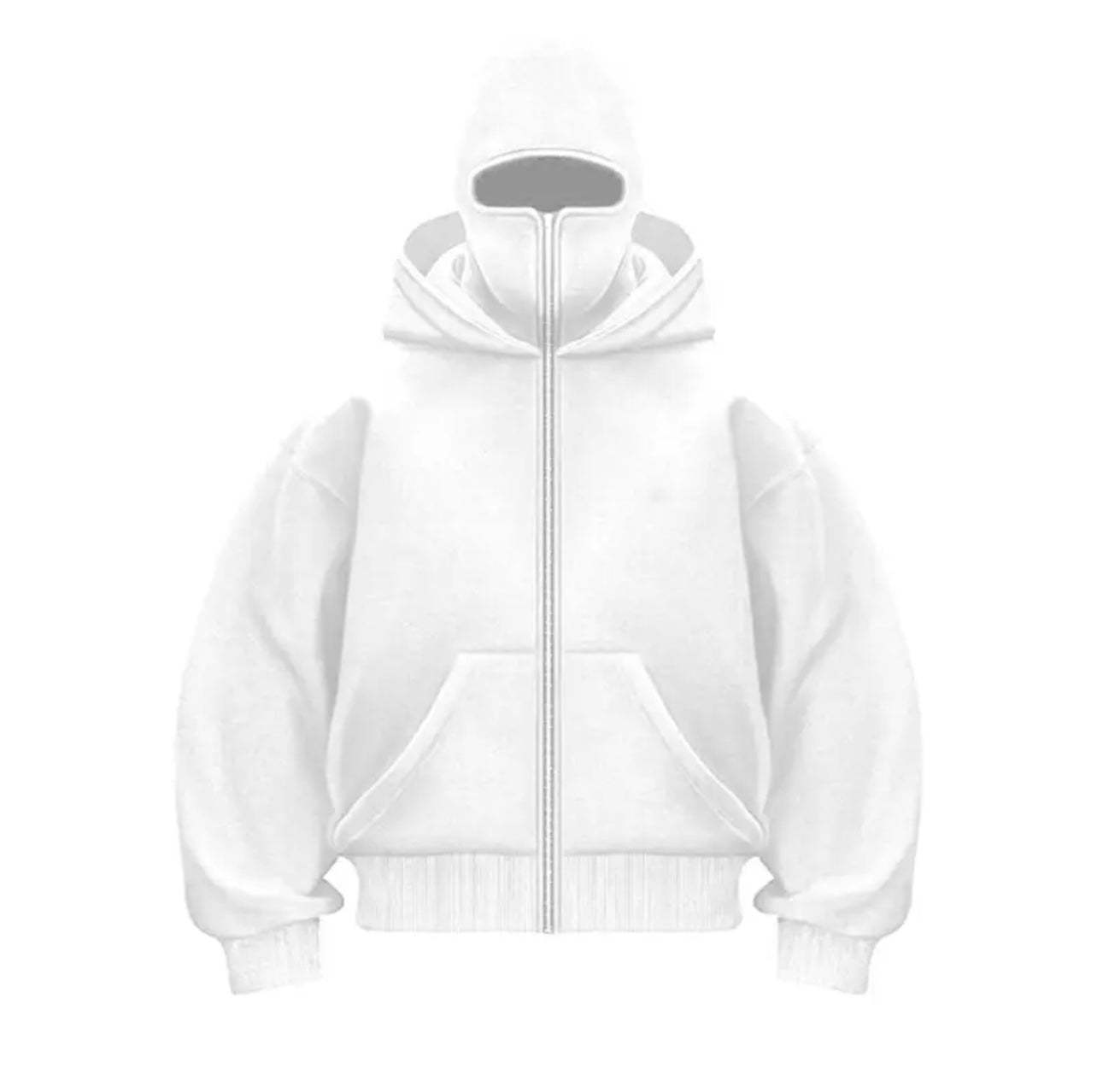 Sudadera con capucha y bolsillo de dos piezas con cremallera, estilo hip hop, estilo retro, de moda, de invierno, color sólido, resistente al viento y cálida, estilo cárdigan de dos piezas