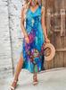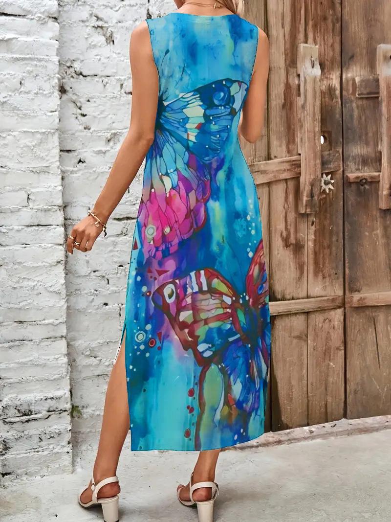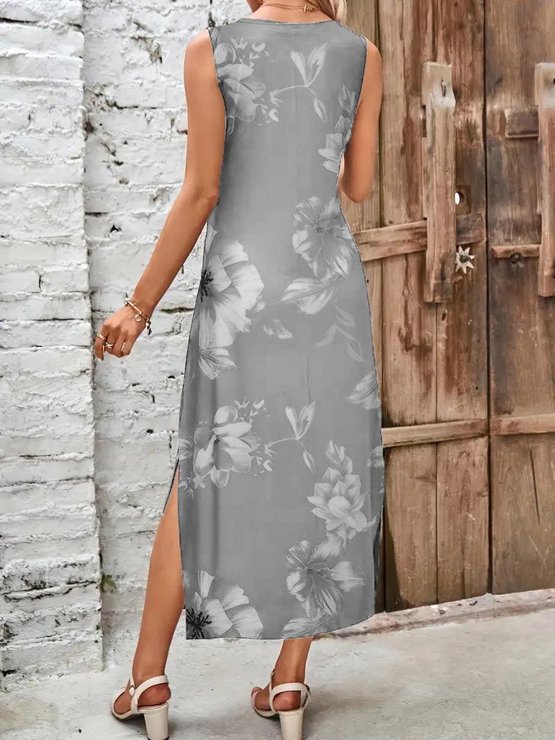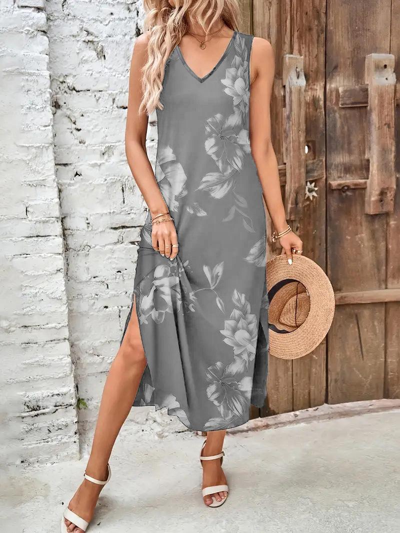 Vestido estampado con escote en V y abertura en la parte delantera, de Amazon, para verano de 2025, disponible en Europa y América.