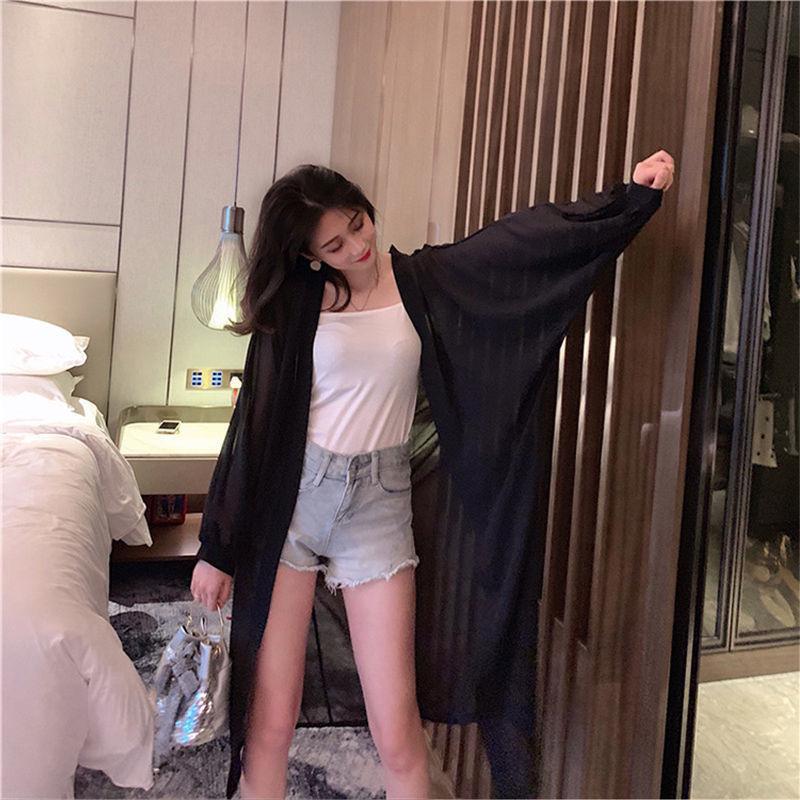 Verano 2025, estilo coreano, nueva chaqueta retro de longitud media estilo Hong Kong, camisa holgada de gasa con protección solar y combinable.