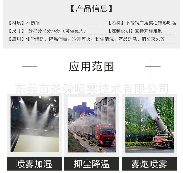 Boquilla de gran angular de acero inoxidable, boquilla de pulverización industrial de cono sólido, boquilla de pulverización de humidificación, enfriamiento, boquilla de atomización de alta y baja presión