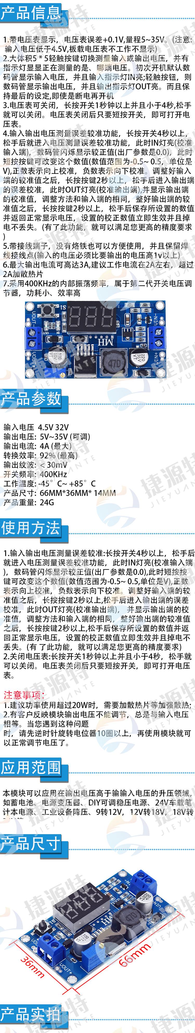 Módulo elevador ajustable XL6009 mucho más allá de LM2577 4.5-32 litros 5-35 con pantalla de voltímetro digital
