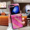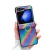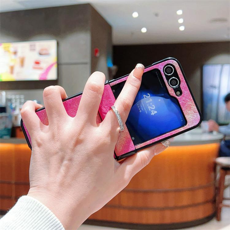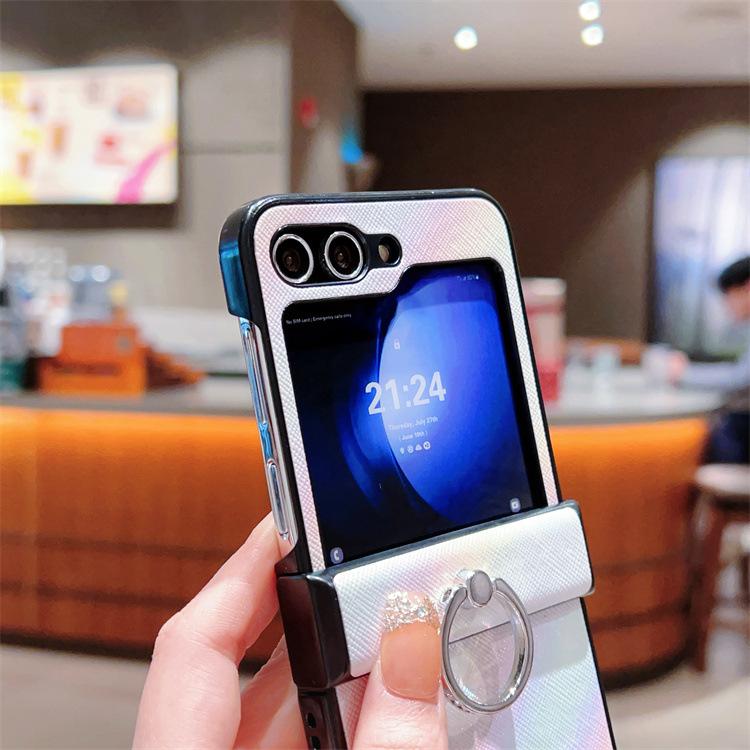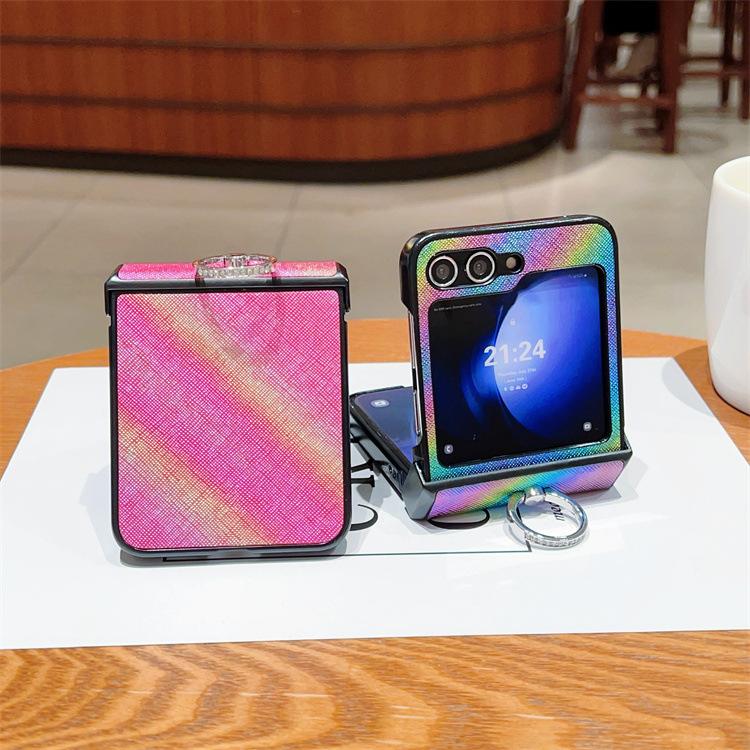 Funda para teléfono móvil Samsung ZFlip5 con hebilla de anillo degradado, funda de cuero plegable ZFlip3/4 con soporte y cubierta protectora con borde cruzado