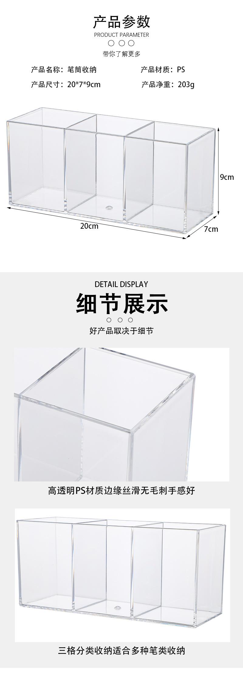 Black three-grid Pen Holder, White three-compartment Pen Holder, Transparent three-compartment Pen Holder