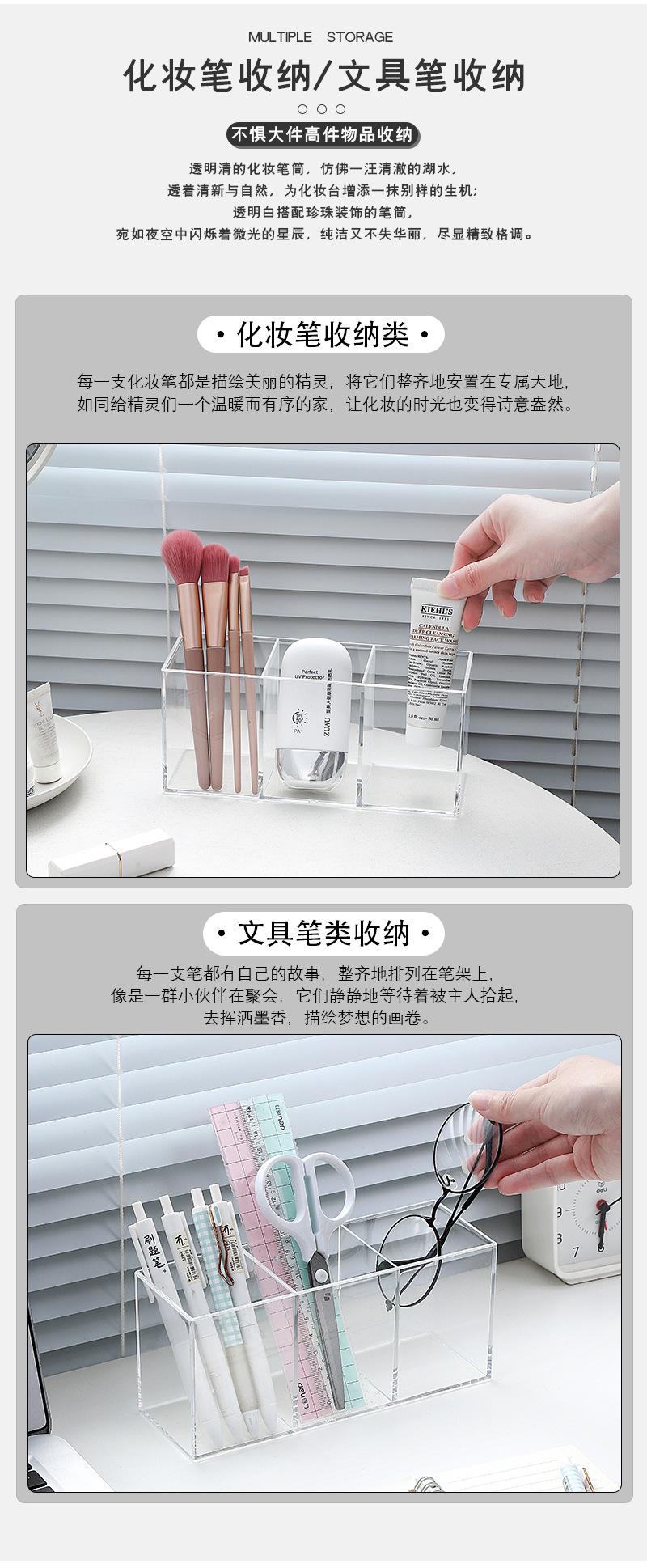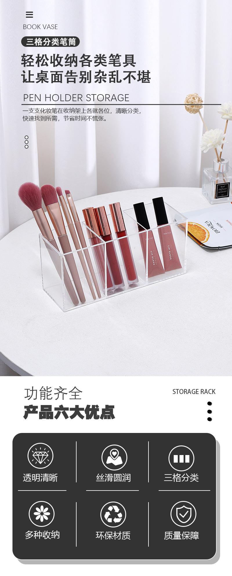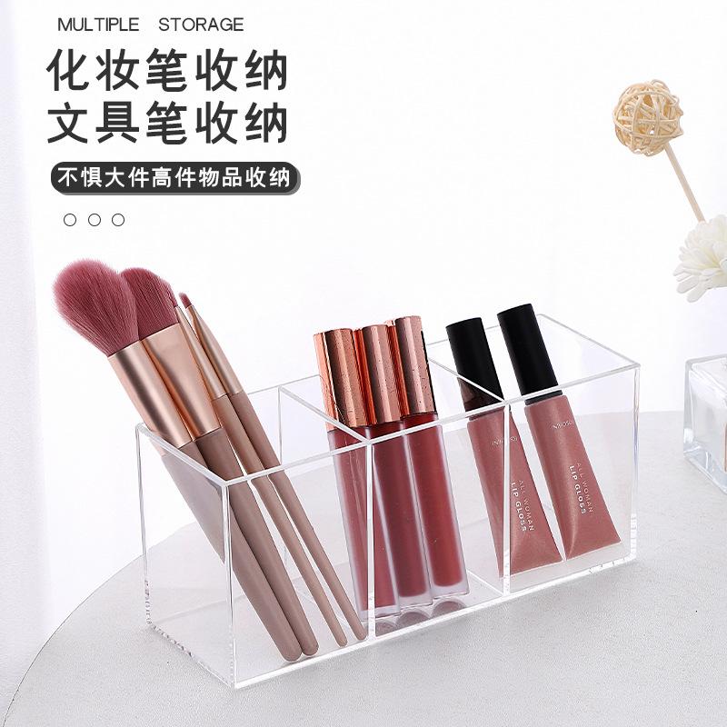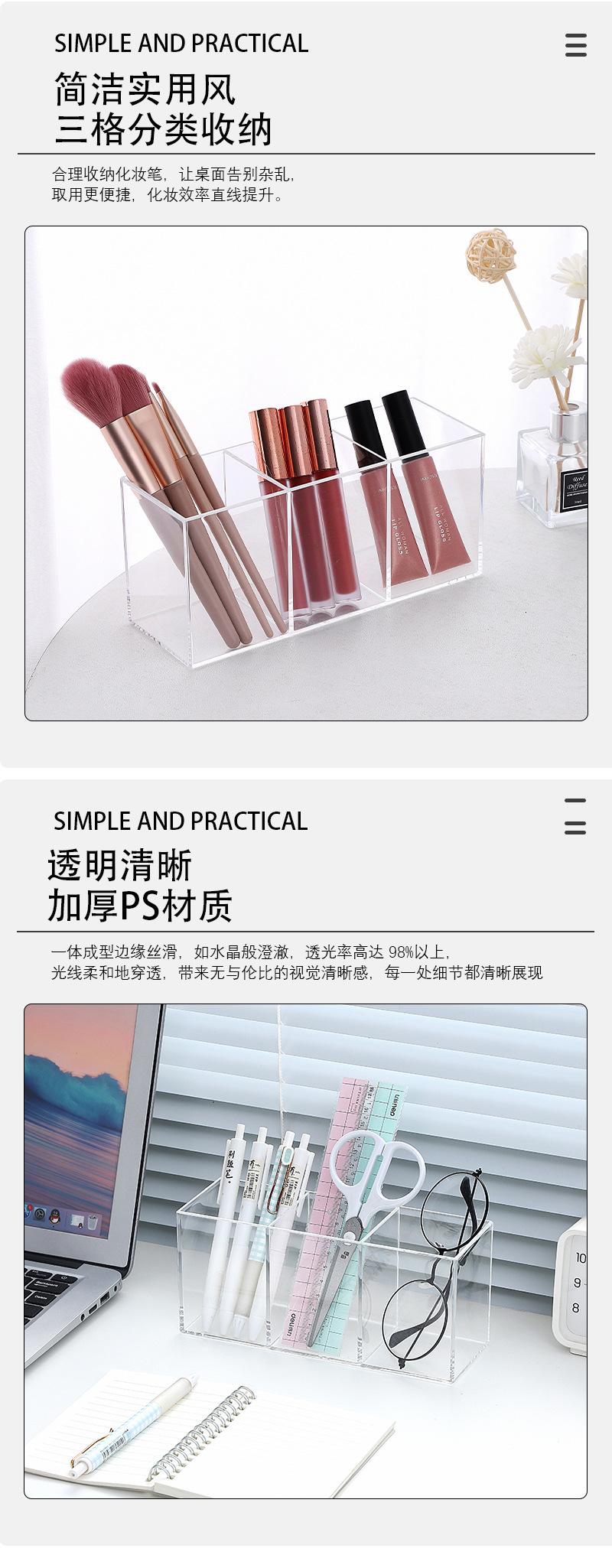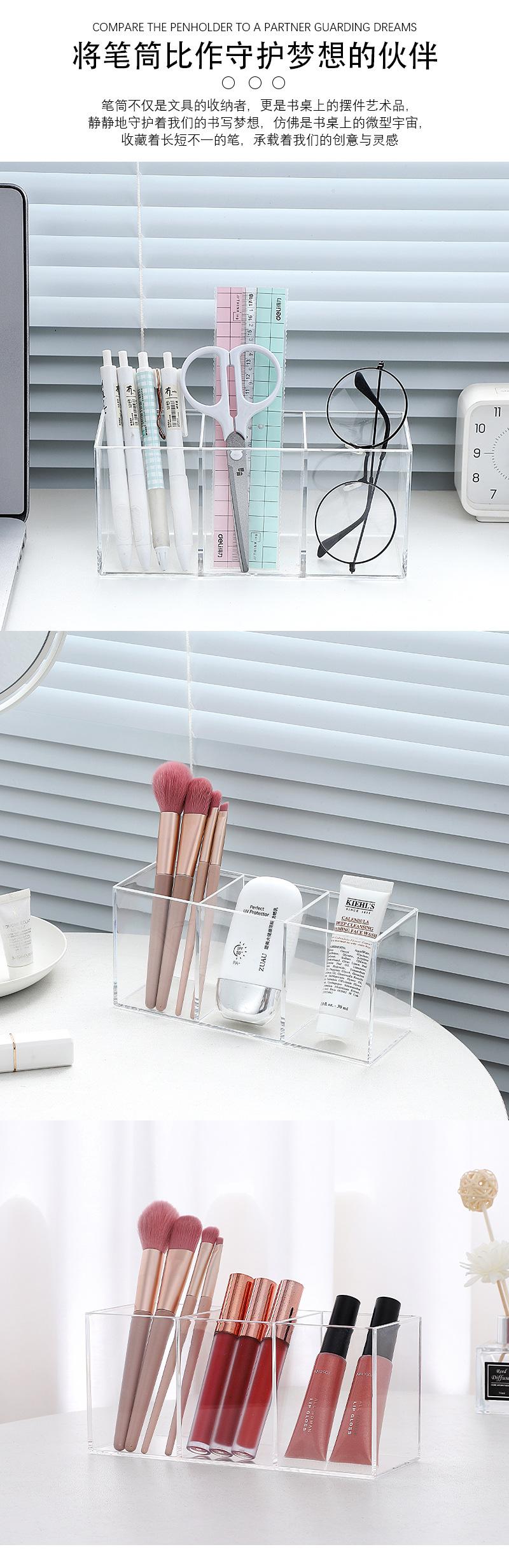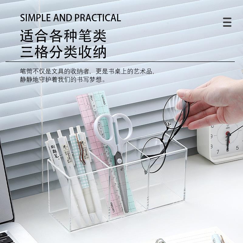 Moderno y sencillo portalápices multifunción de plástico con tres compartimentos, acrílico, para escritorio, para organizar artículos diversos, caja para guardar lápices