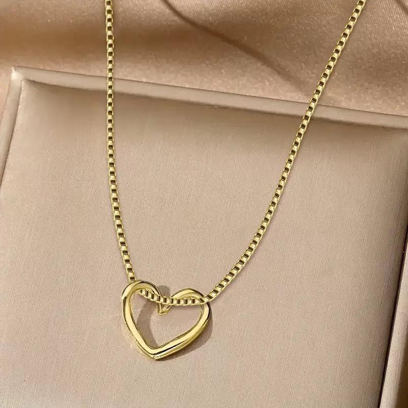 Collar de amor de acero de titanio con forma de corazón, chapado en oro de 18 quilates, resistente a la decoloración, cadena de clavícula, colgante de corazón de acero inoxidable, estilo europeo y americano