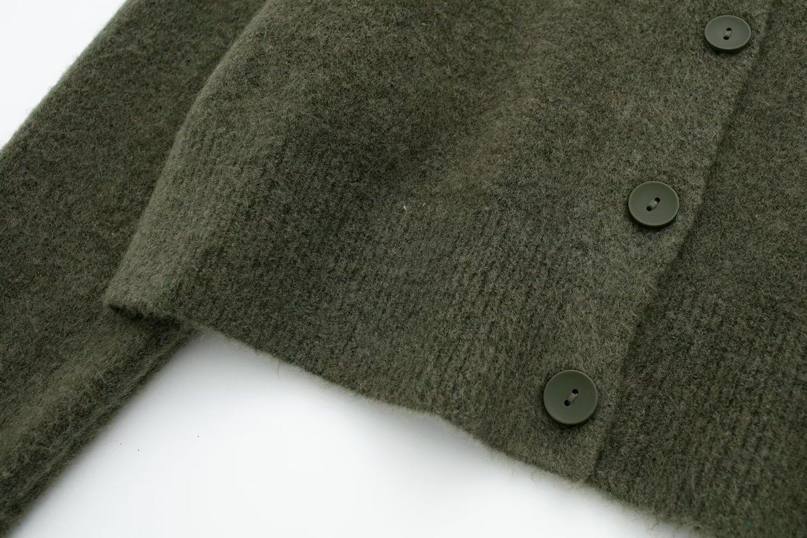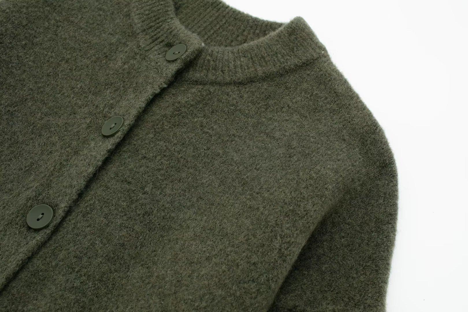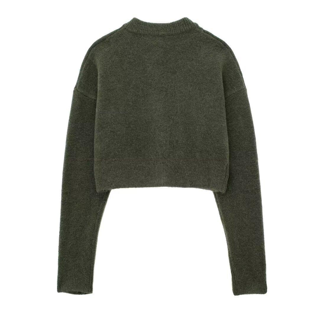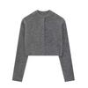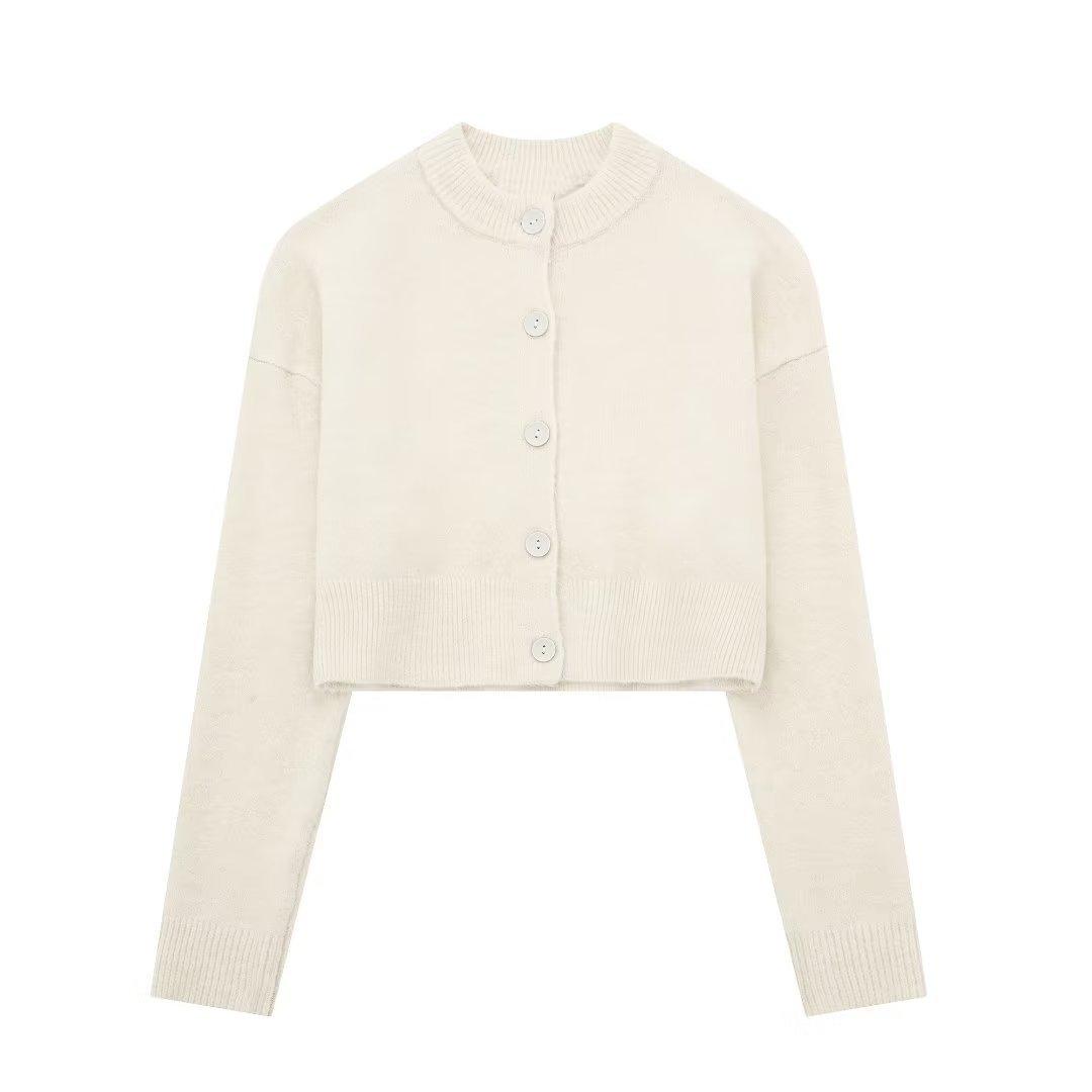 Nuevos Productos de Invierno 2023 Moda Femenina Transfronteriza Europea y Americana Cuello Redondo Casual Corto Color Puro Cárdigan Tejido Suéter Chaqueta