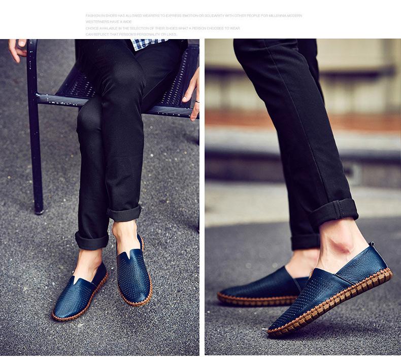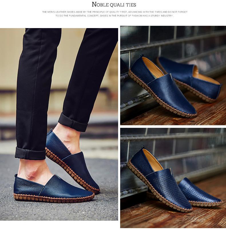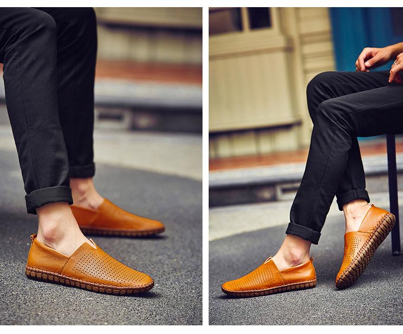 Zapatos de hombre de talla grande, de piel auténtica suave, clásicos, combinables, informales, ligeros, para exteriores, mocasines para hombre, hechos a mano.