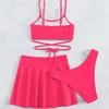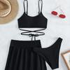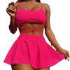 Traje de baño de tres piezas de bikini de color sólido para mujer en stock al por mayor de comercio exterior europeo y americano traje de baño de bikini traje de baño de tirantes