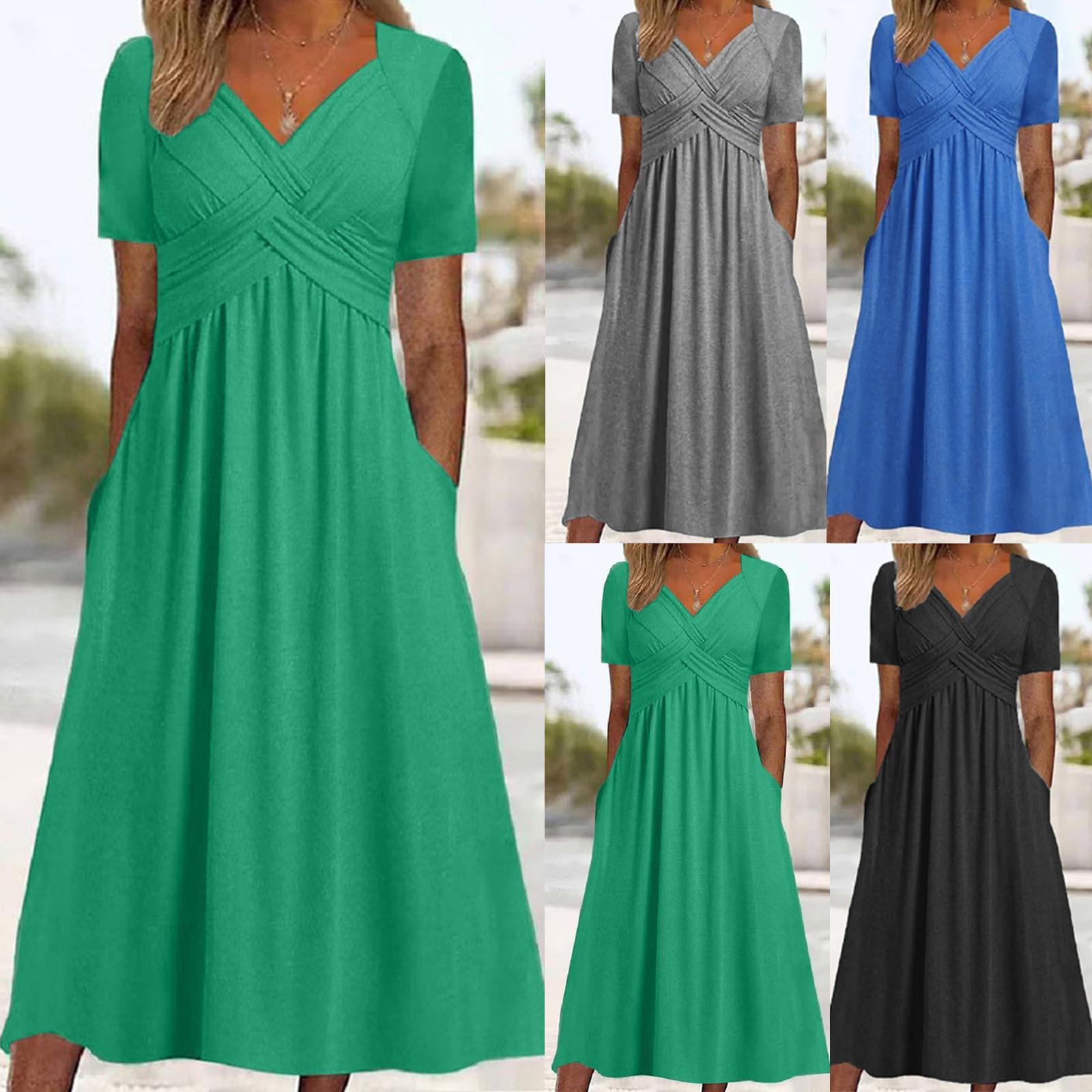 Vestido de verano transfronterizo de Amazon 2025, nuevo, de manga corta, para mujeres europeas y americanas, con personalidad femenina.