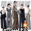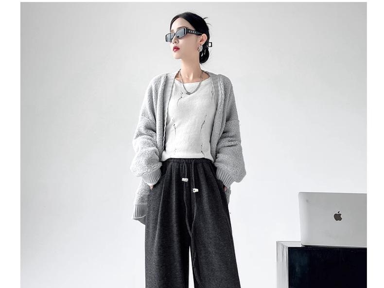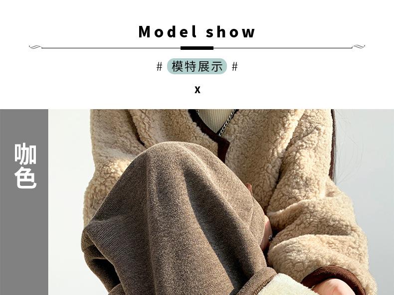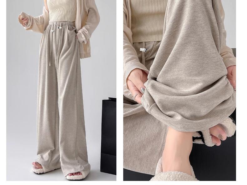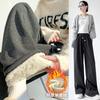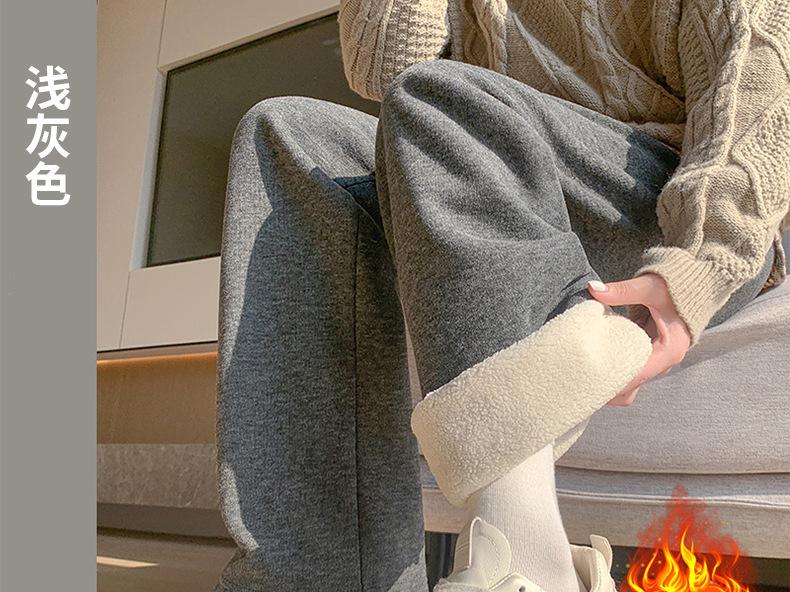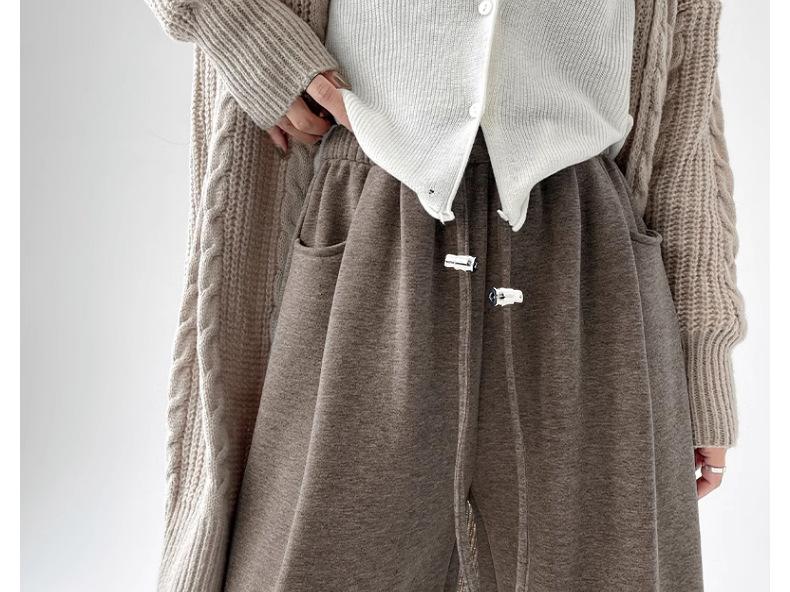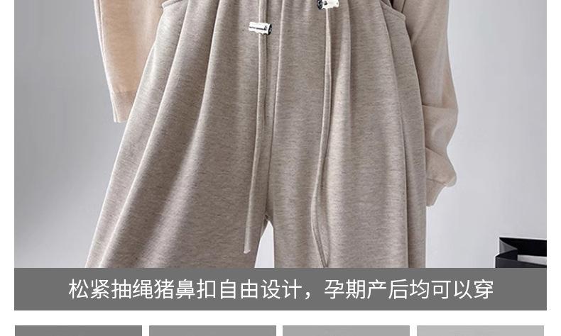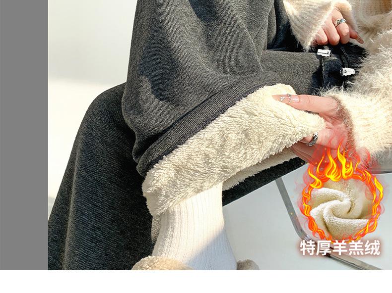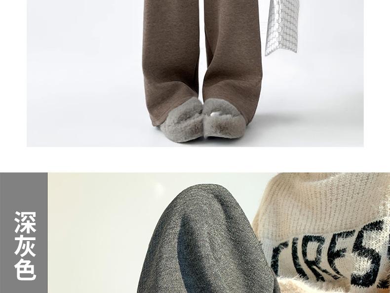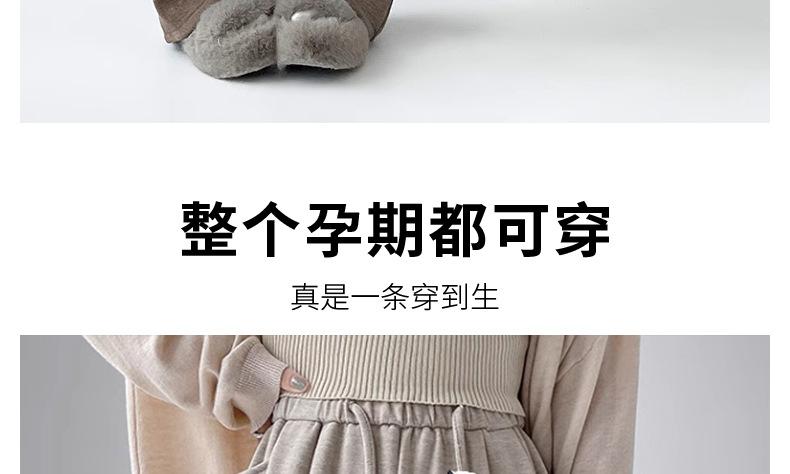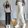 Pantalones de Maternidad Otoño e Invierno Nuevo Estilo Terciopelo de Cordero Forrado de Lana Espesado Arroz Glutinoso Cintura Alta Ropa Exterior Cordón Casual Pierna Ancha Pantalones de Soporte para el Vientre