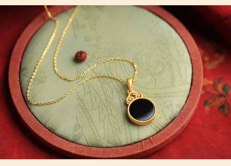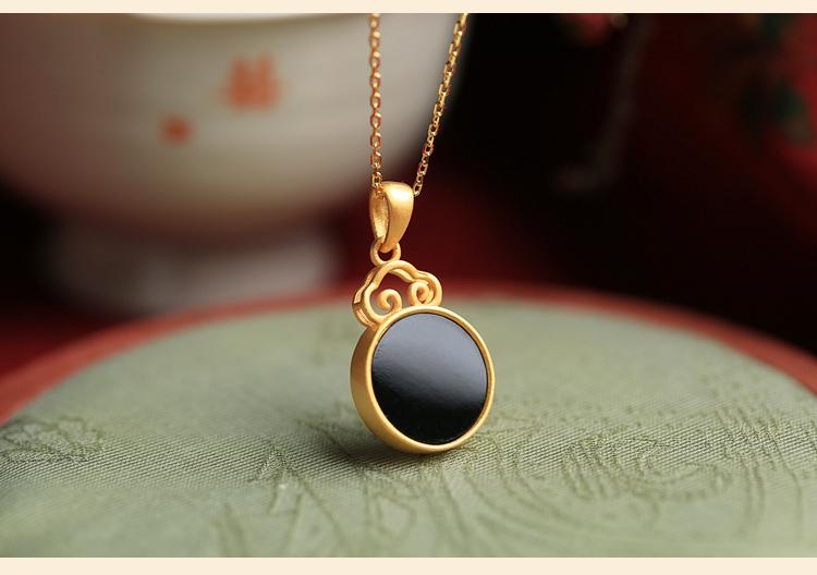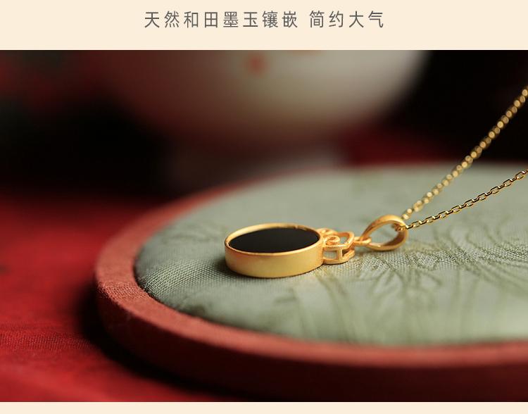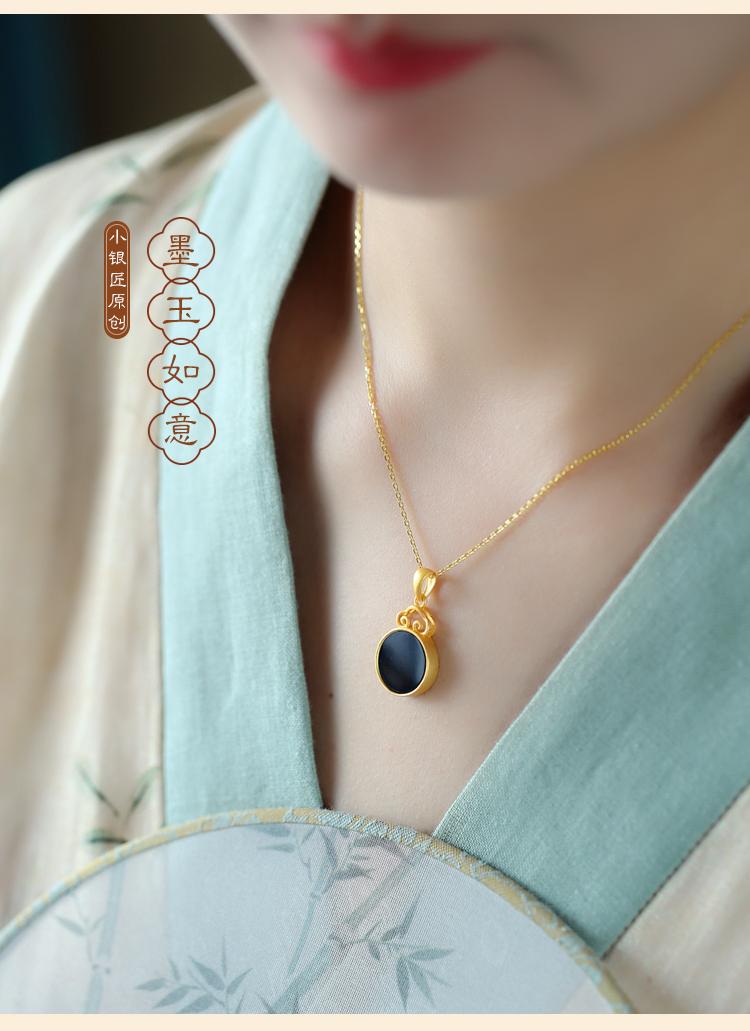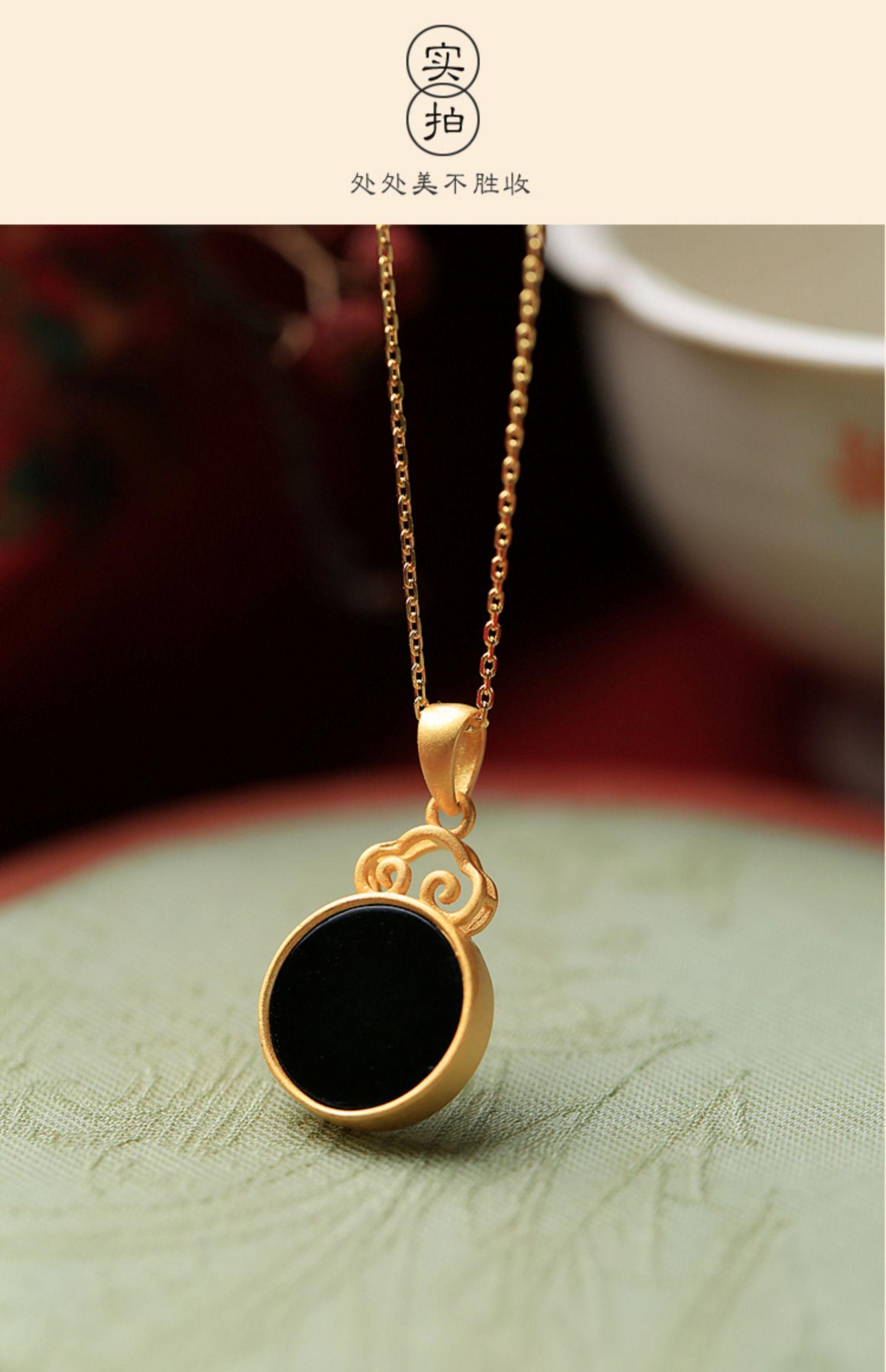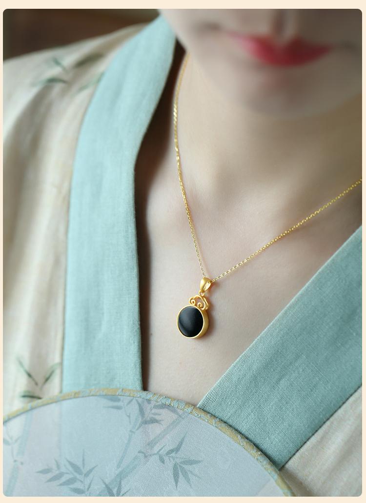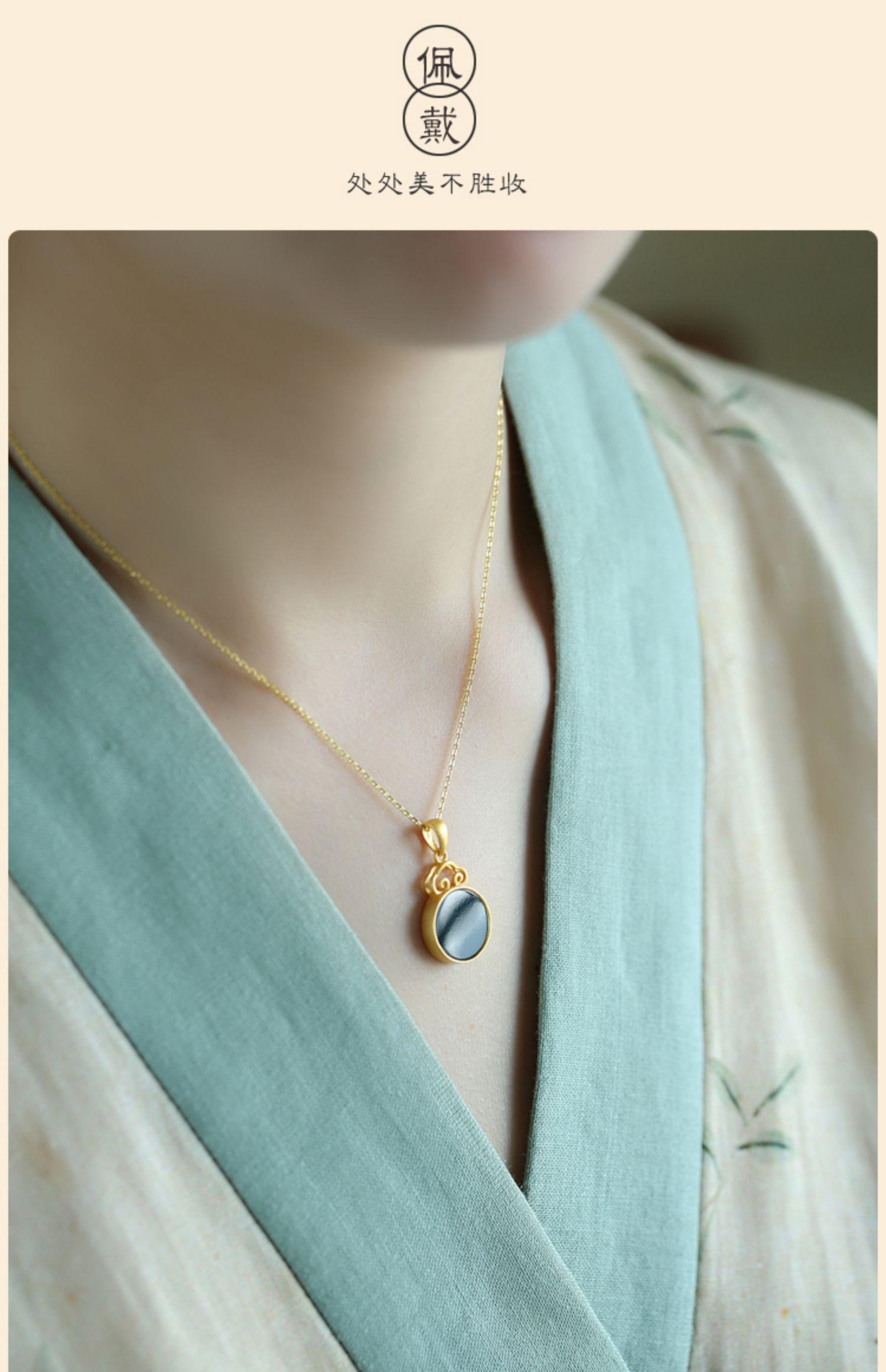 Colgante de Jade Hetian Natural Ruyi para Mujer Plata Esterlina Oro Antiguo Hebilla de Seguridad Jade Collar Cadena Clavícula