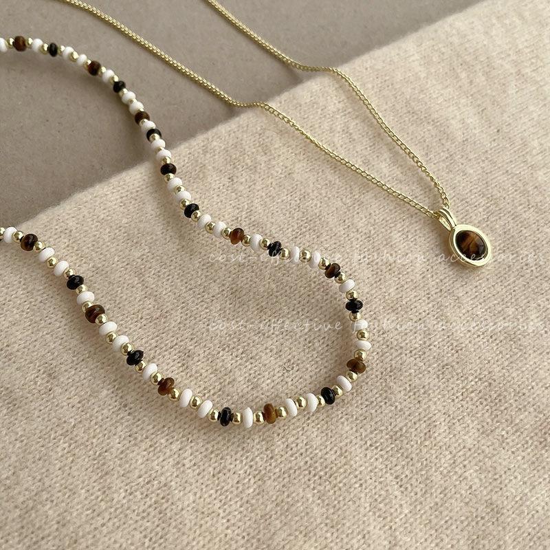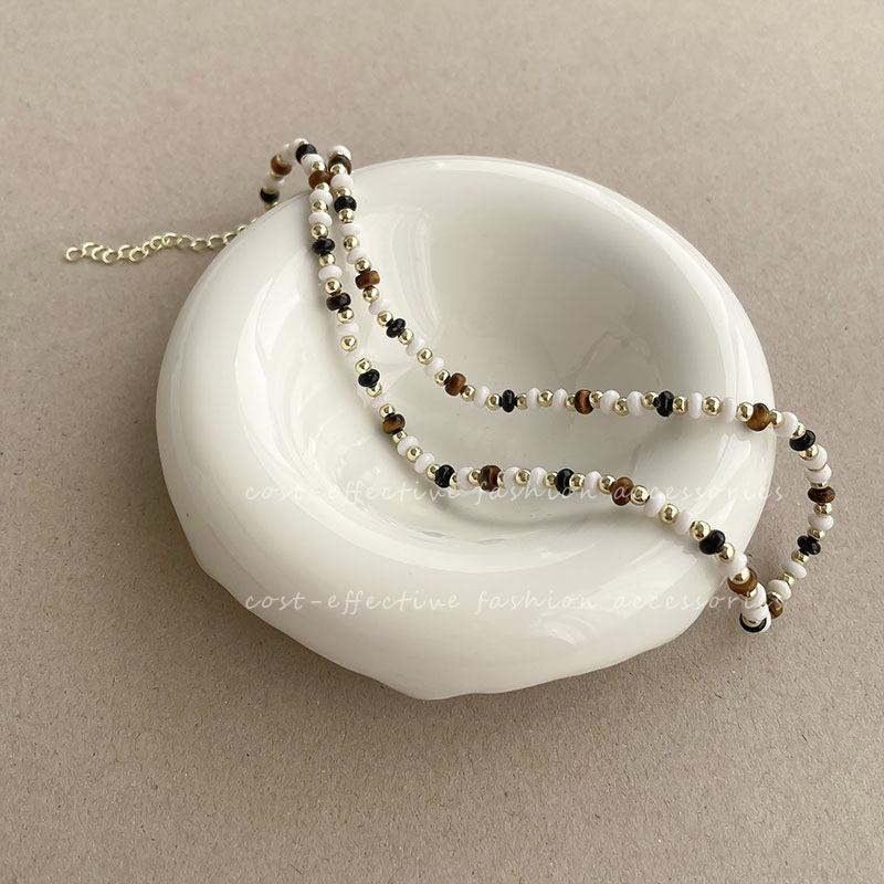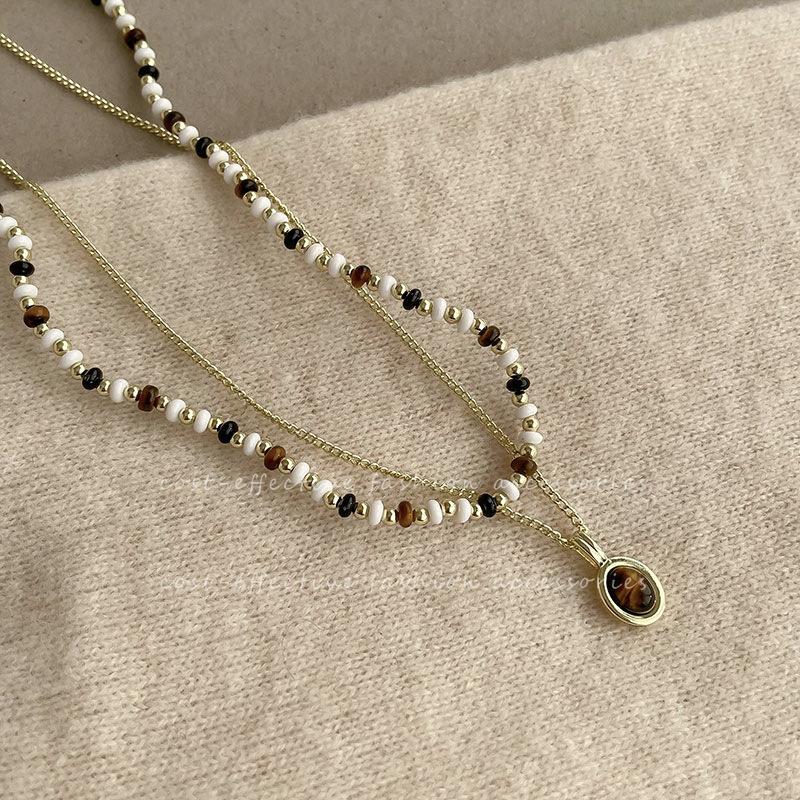 Collar de cuentas de piedra de ojo de tigre para mujer 2023, nuevo diseño de nicho de lujo ligero con accesorios apilados de doble capa y cadena de clavícula de alta calidad.
