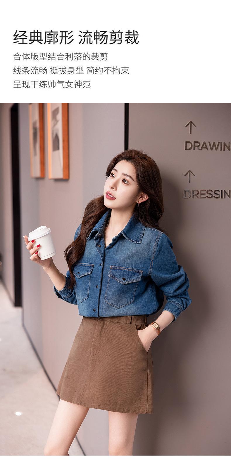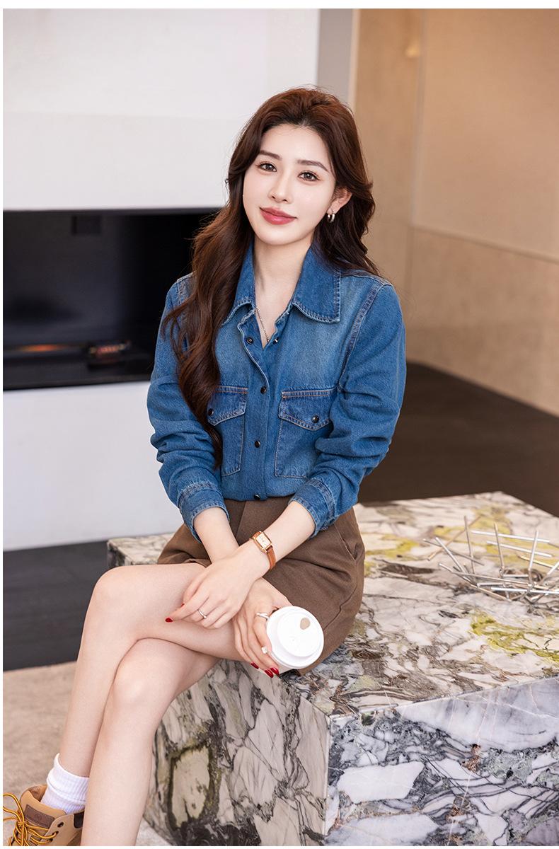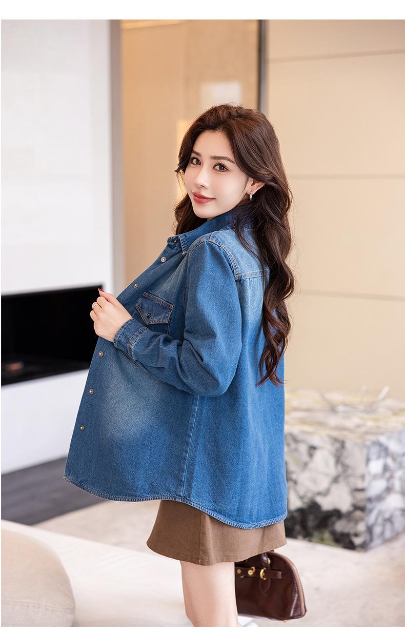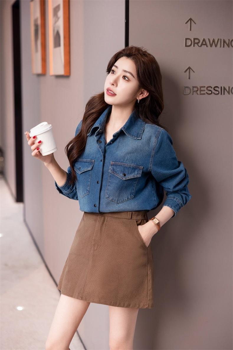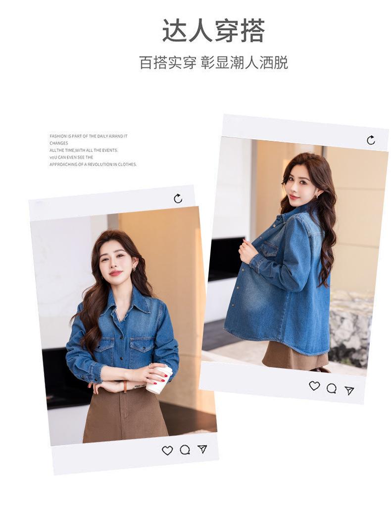 Foto Real de Camisa de Mezclilla Retro para Mujer Primavera y Otoño 2025 Nuevo Estilo en Capas con Top Básico de Hombro Derecho Ropa Exterior Holgada para Mujer