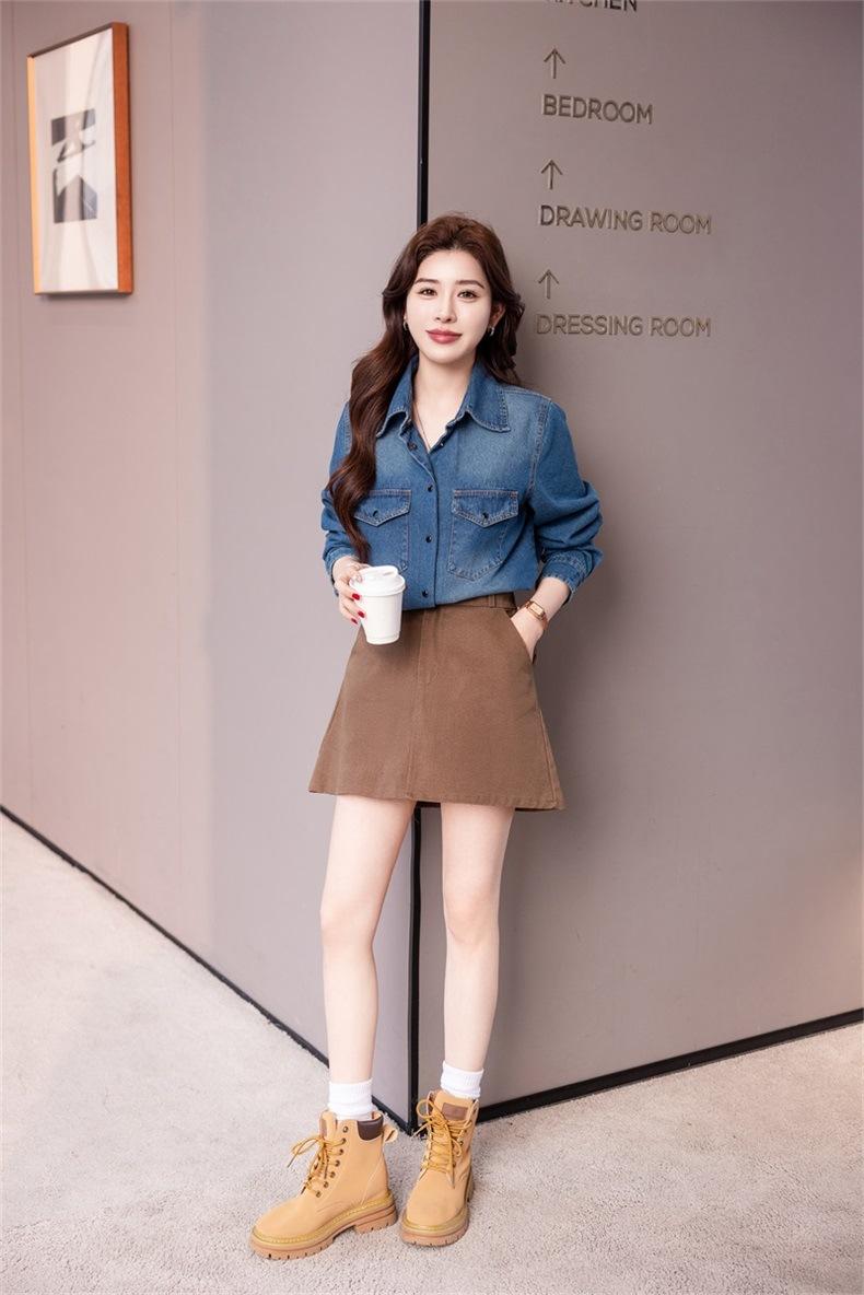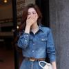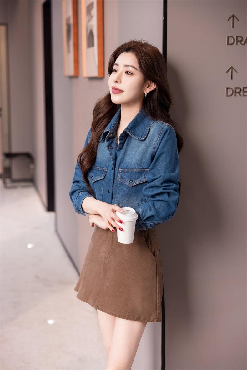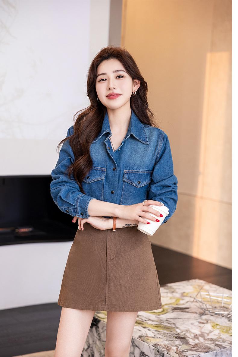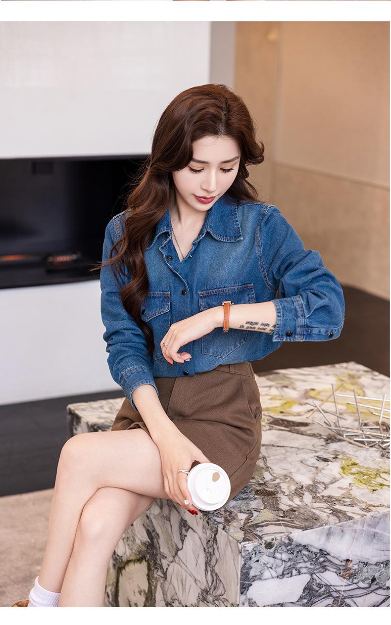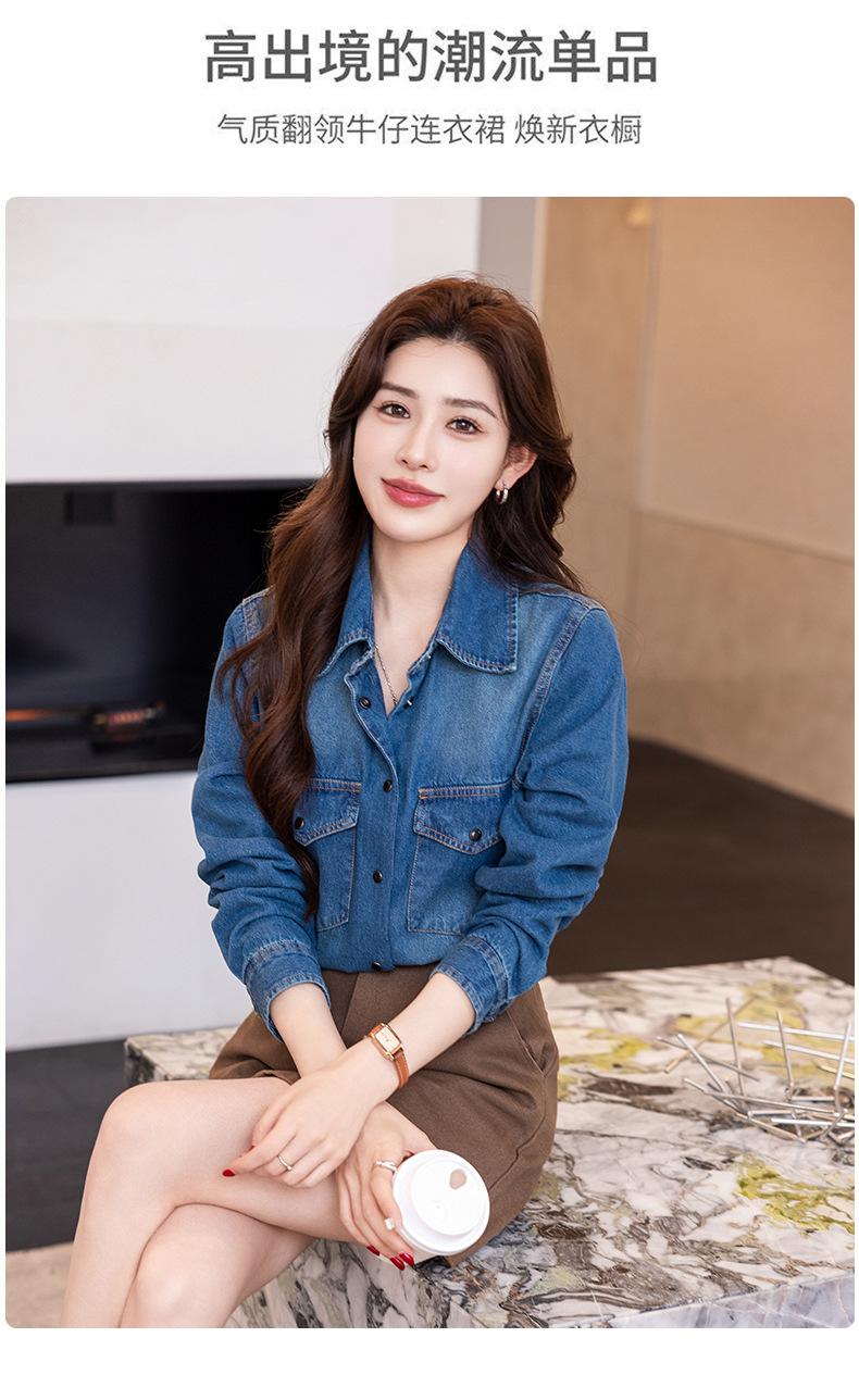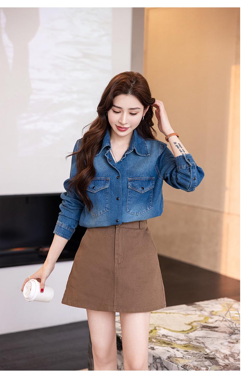 Foto Real de Camisa de Mezclilla Retro para Mujer Primavera y Otoño 2025 Nuevo Estilo en Capas con Top Básico de Hombro Derecho Ropa Exterior Holgada para Mujer