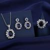 Conjunto de tres piezas europeo y americano con piedras preciosas azules de copo de nieve de colores, muy popular entre los compradores internacionales, con incrustaciones de diamantes, collar, anillo y pendientes para mujer.
