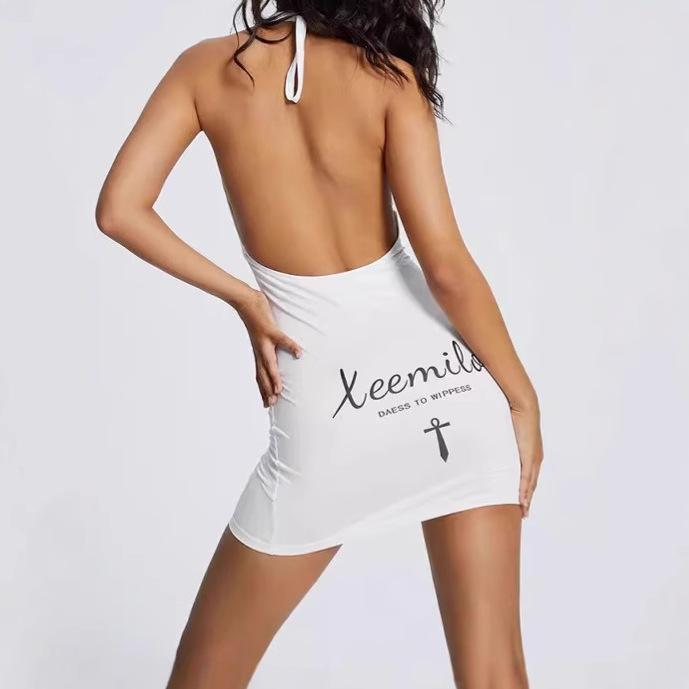 Vestido interior sexy sin mangas con cuello redondo y estampado sin espalda para mujer, primavera y verano 2025, transfronterizo europeo y americano