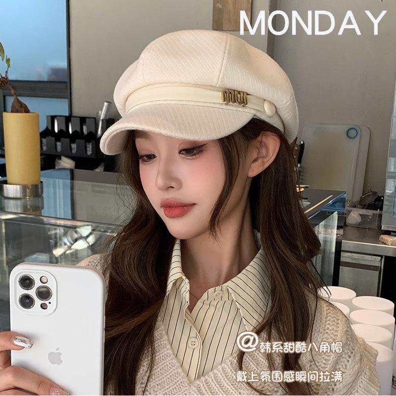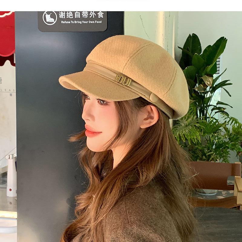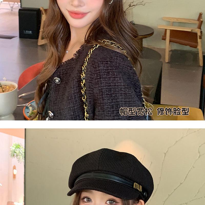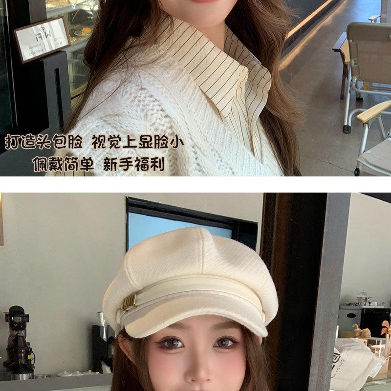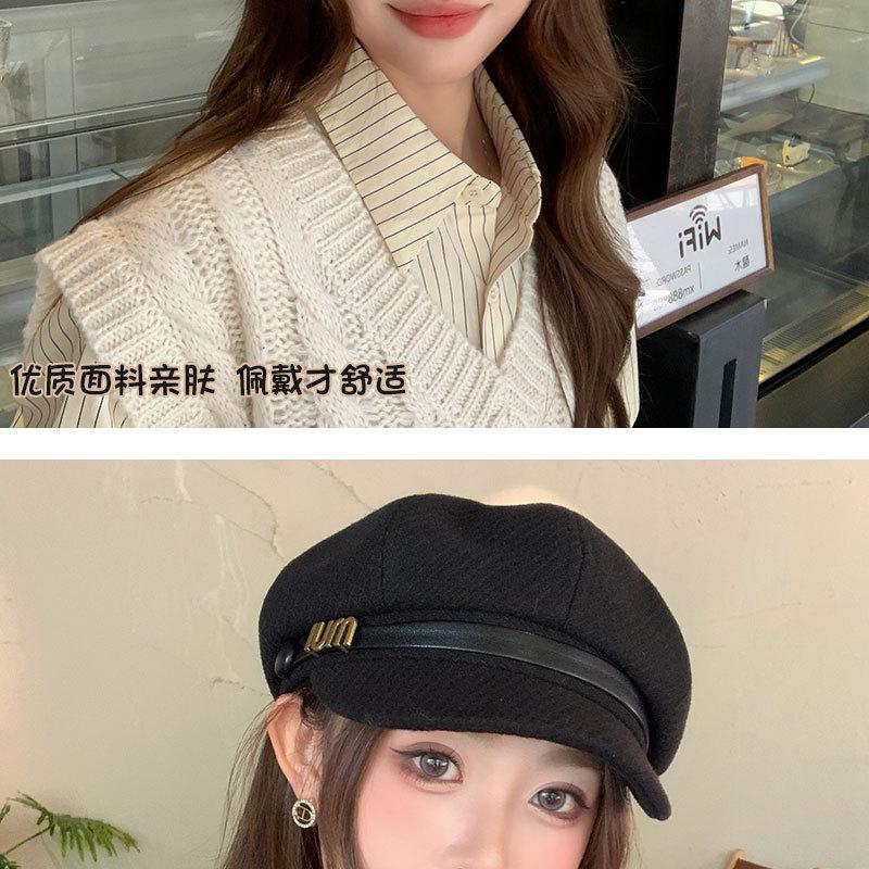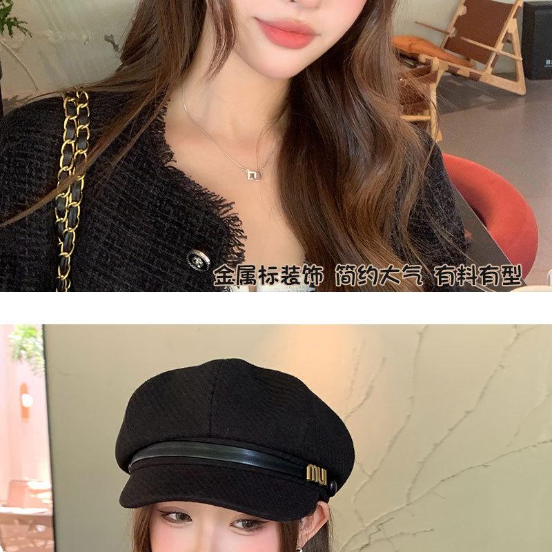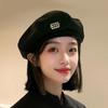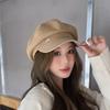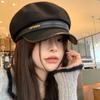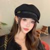 Boina negra vintage para mujer, otoño e invierno, británica, para todo tipo de rostro, gorra octogonal pequeña, de algodón, con gran circunferencia de cabeza, sombrero de pintor