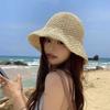 Sombrero de pescador de paja para mujer, novedad de verano de 2025, pequeño sombrero de protección solar para montar a caballo, sombrero de paja con lazo para mujer que combina con todo, sombrero para el sol.